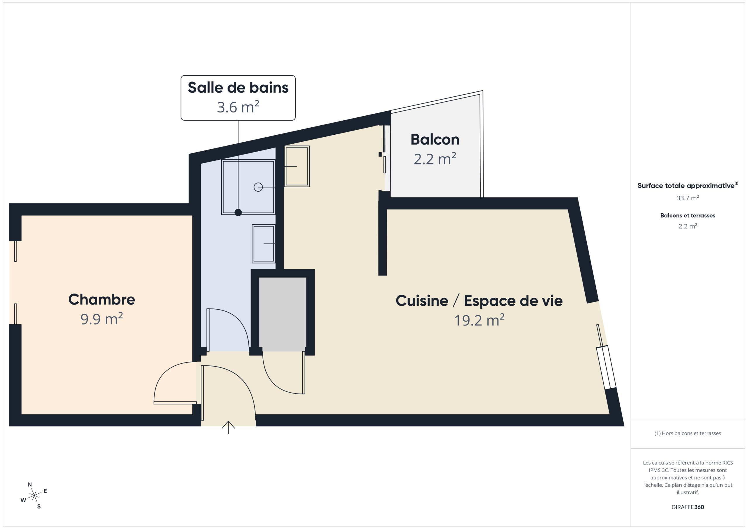 You will access the apartment located on the 2nd floor without a lift. Upon arrival, you will discover the main living area with the living room corner, sofa, television and table for your meals. You will also access the balcony through the living room. You will also discover the kitchen area, fully equipped: it has electric hobs, an oven, a microwave, a dishwasher, a kettle, a toaster and a filter coffee maker like Nespresso.