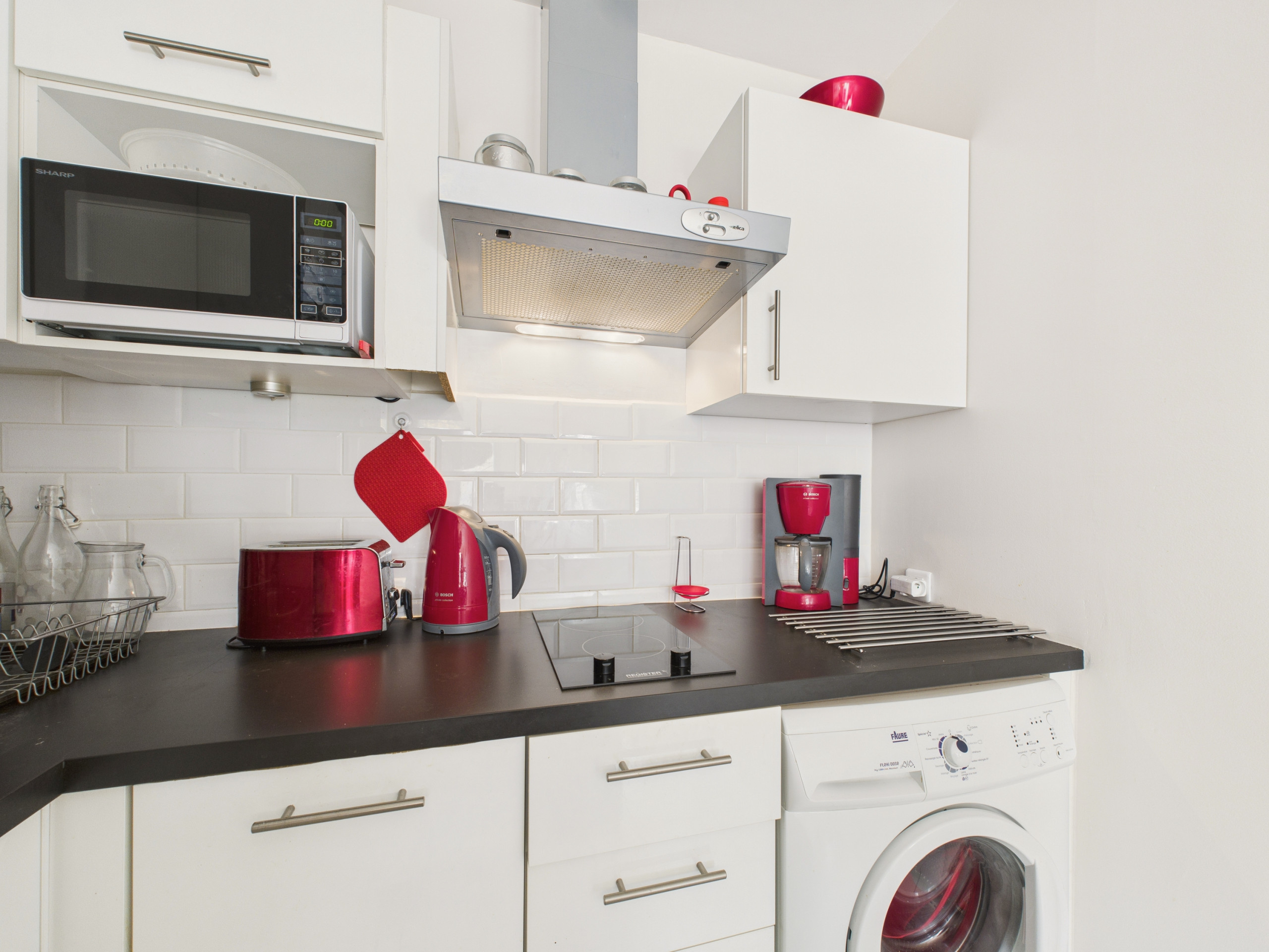 Step through the entrance door and let yourself be seduced by a functional and warm space. You will first discover the kitchen area, fully equipped (refrigerator, freezer, oven, microwave), with everything necessary to cook as if at home. To start the day well, a filter coffee maker, a kettle, and a toaster are also at your disposal.