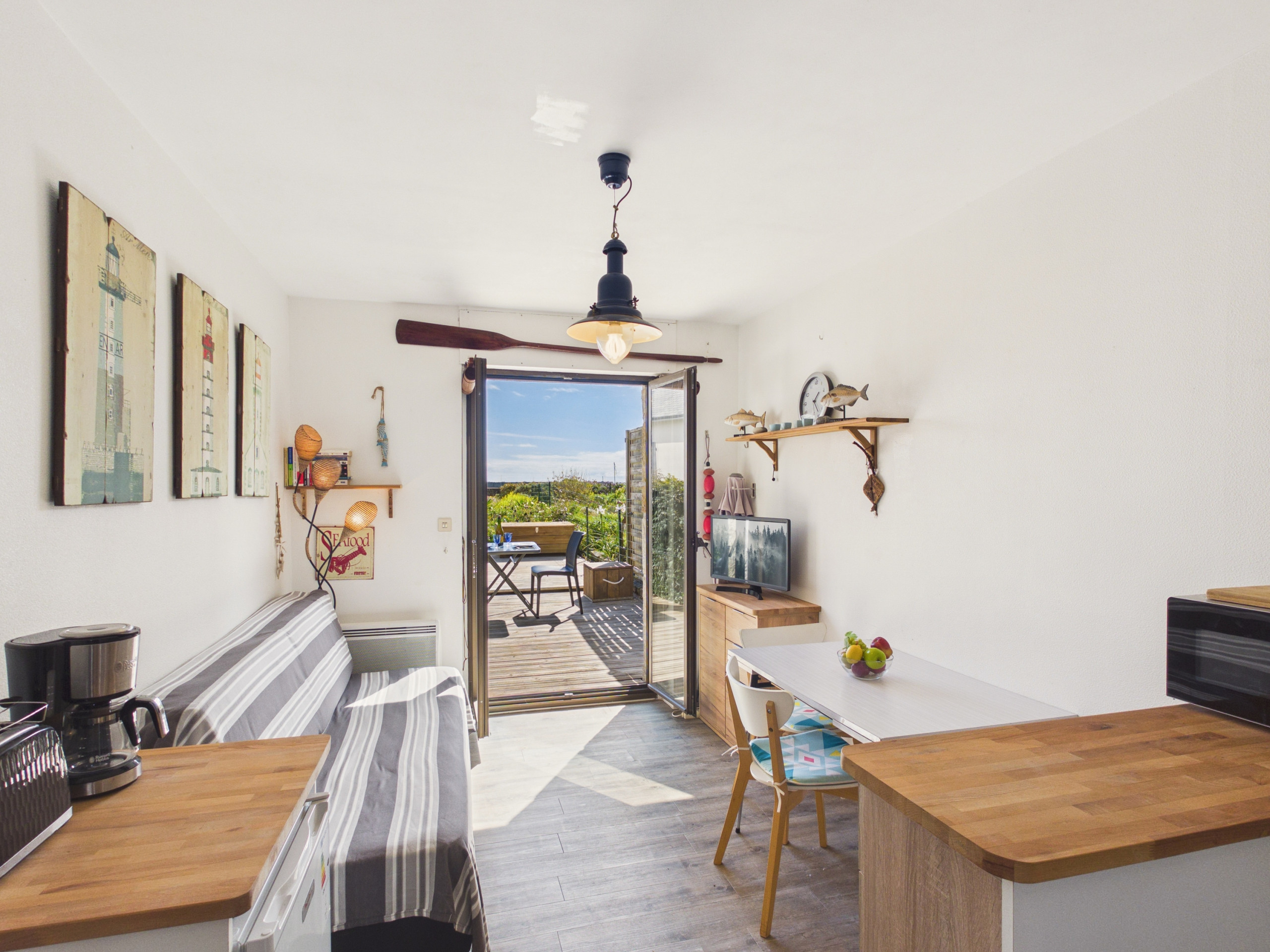 Come and discover this charming apartment located in Penmarch, with a direct sea view and close to shops. You will stay in accommodation that can accommodate up to 2 people, just a few metres from the ocean.