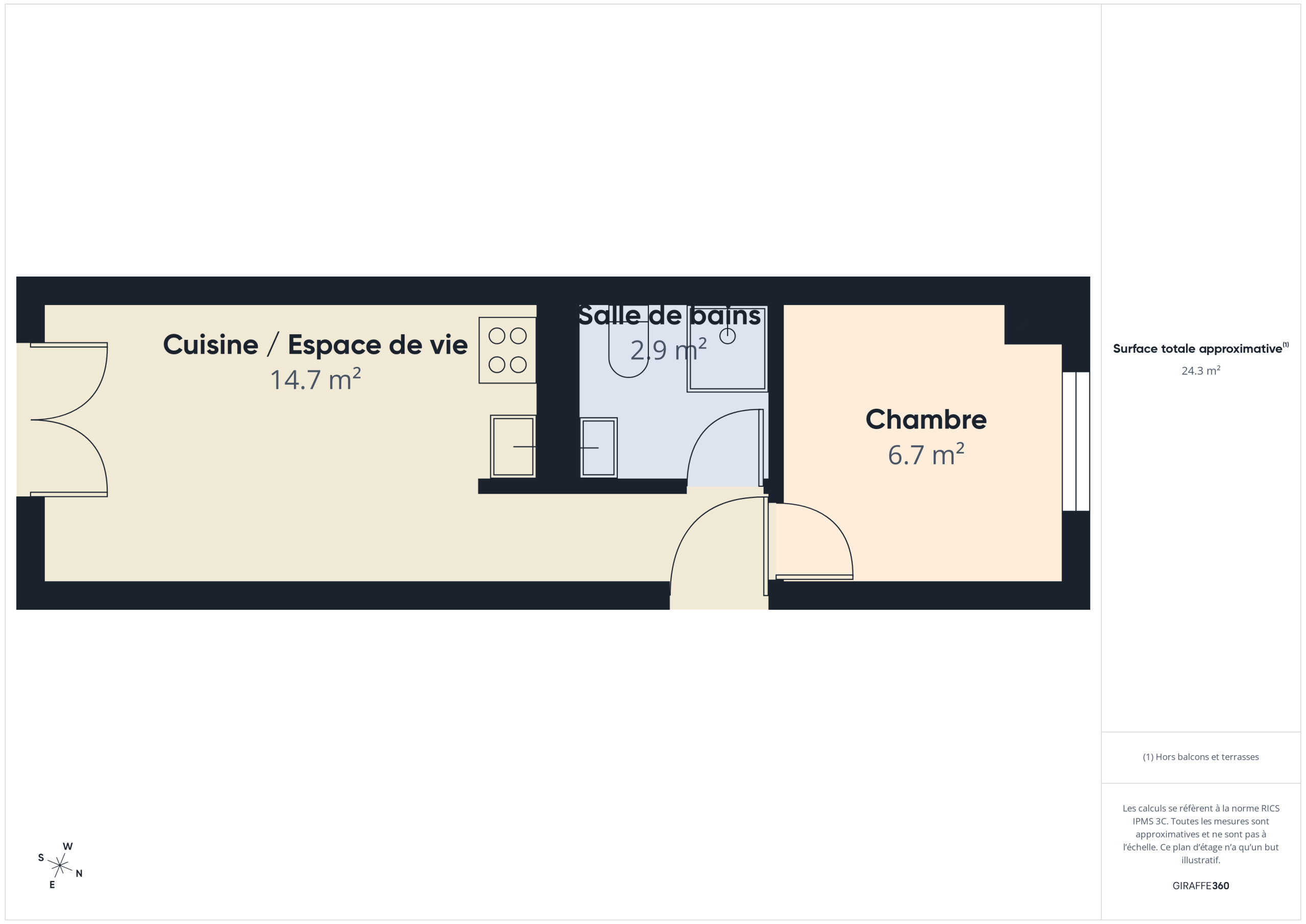 The open kitchen, fully equipped (refrigerator, oven, microwave and induction hobs), offers you everything you need to prepare your meals. For breakfast, a kettle, a toaster and a filter coffee maker are also at your disposal.