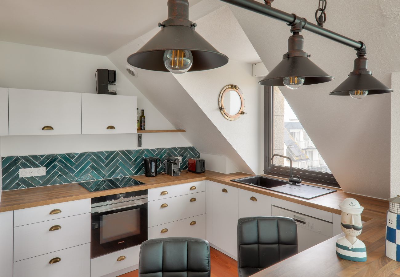Here is an exceptional address to enjoy a vacation with family or friends in Quiberon! This duplex is moored facing the sea, on the 4th floor, which will allow you to enjoy a superb view. You are only a few steps from the beach and the port, so you can take advantage of taking a boat to visit the nearby islands, enjoy a refreshing swim or enjoy good seafood on the terrace. In addition to its proximity to the beach, you will also have access to all the amenities and thus be able to enjoy your stay on foot.