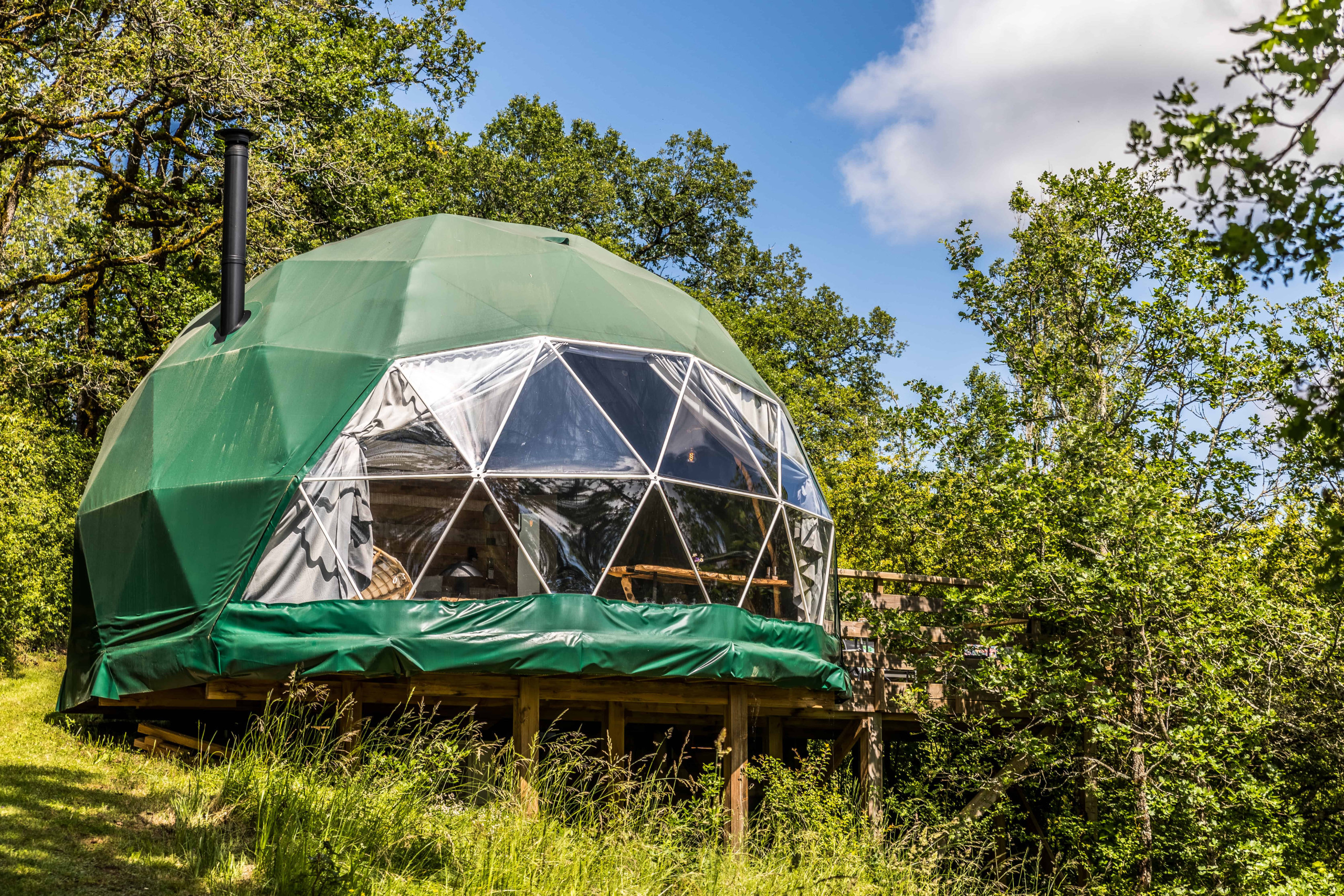 Welcome to "La Grande Ourse", a 40 m² dome installed in a peaceful environment, in the heart of the countryside of La Dornac. This cocoon, located on the edge of the forest, is carefully decorated and designed to offer you a true moment of relaxation. You will enjoy a large private terrace with a dining area as well as an exclusive hot tub.