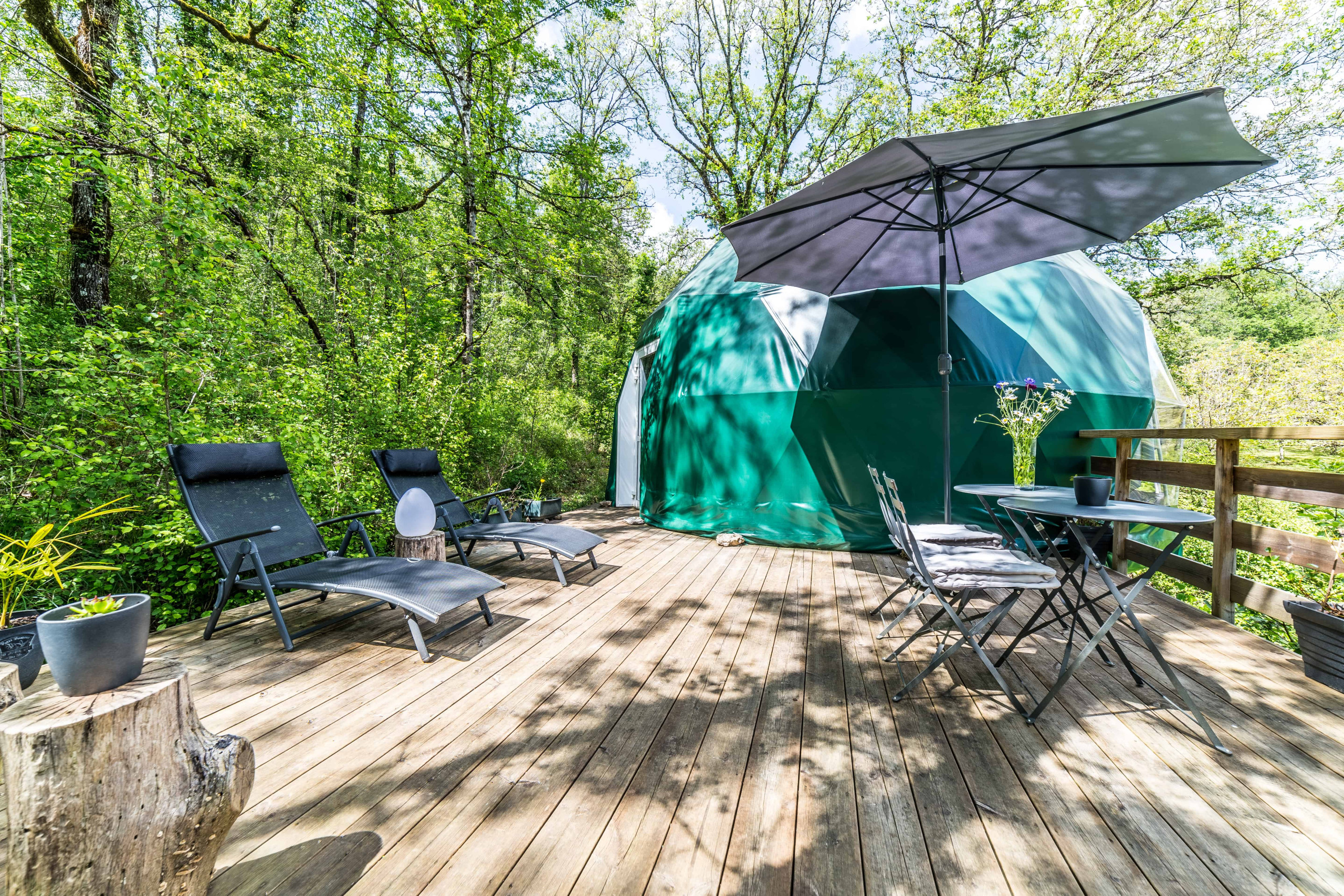 Welcome to "La Grande Ourse", a 40 m² dome installed in a peaceful environment, in the heart of the countryside of La Dornac. This cocoon, located on the edge of the forest, is carefully decorated and designed to offer you a true moment of relaxation. You will enjoy a large private terrace with a dining area as well as an exclusive hot tub.