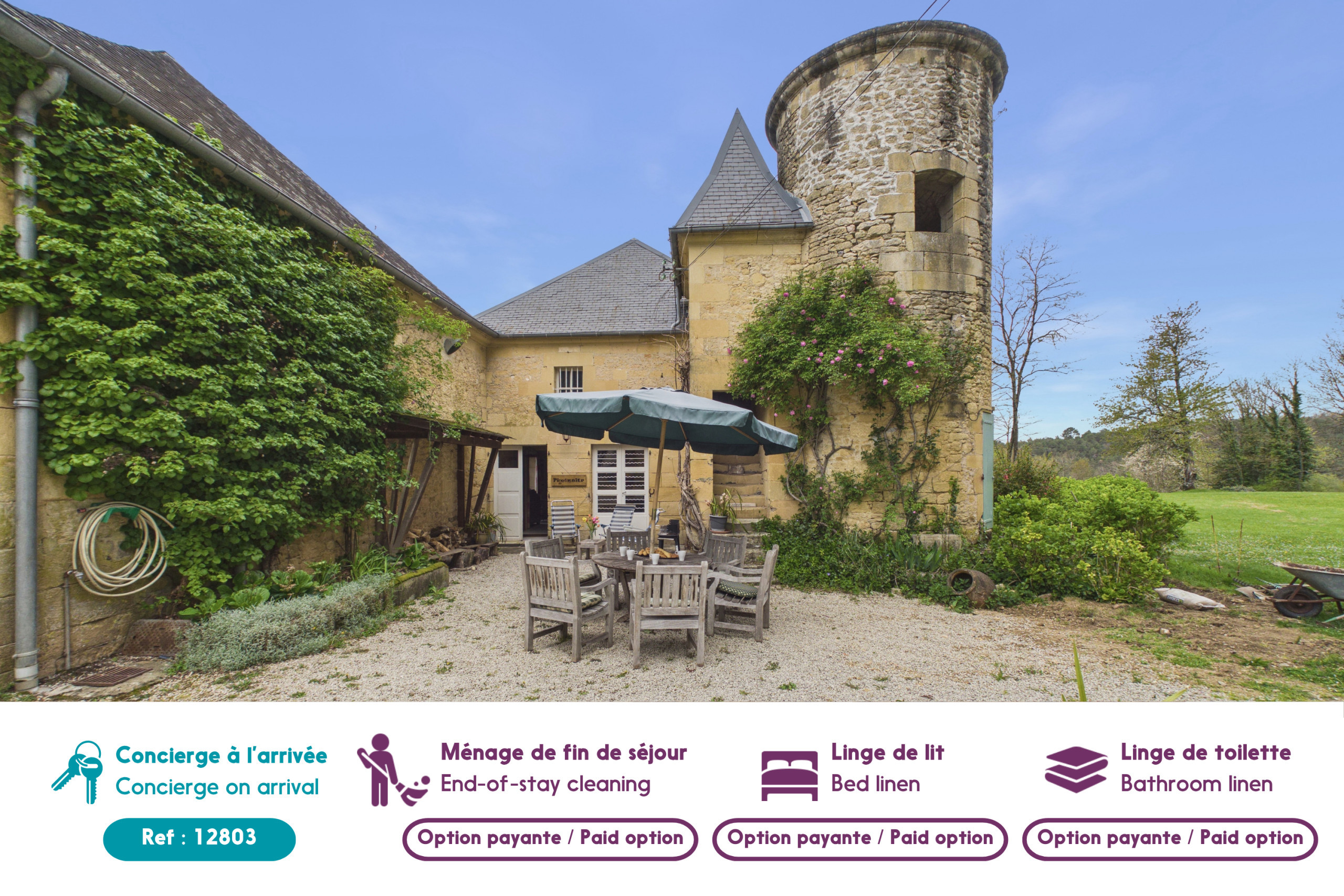 If you wish the linen or towels option, you can request it during your telephone exchange with the owner. During your stay, there will be no renewal of household linen, nor cleaning service.