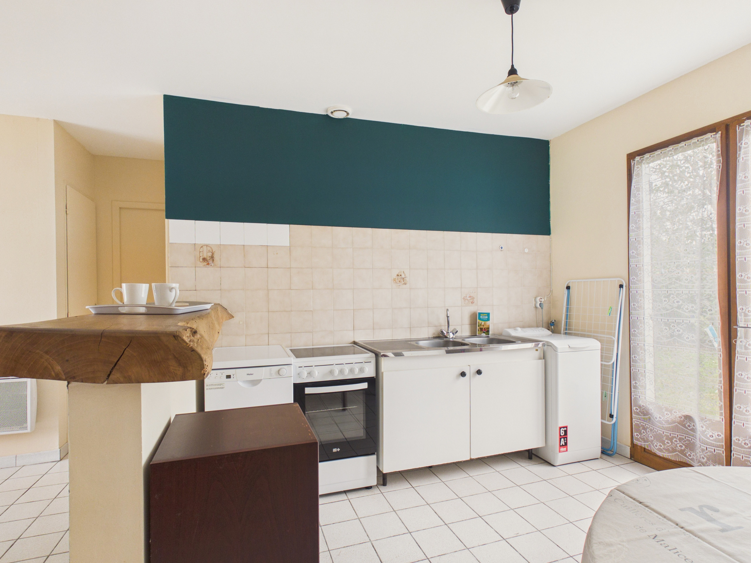 The living area is welcoming with its exposed beams and large openings. The fireplace (non-functional) and its view of the garden make it a place where you will want to gather together, whether around a good meal in the dining room, on the sofa around a cup of coffee, or to watch a film on television. Then, you will find the independent kitchen that will provide you with everything necessary to prepare your meals: gas hobs, refrigerator, microwave, new traditional oven, freezer, dishwasher, Dolce Gusto coffee machine, Senseo coffee machine, toaster and kettle.