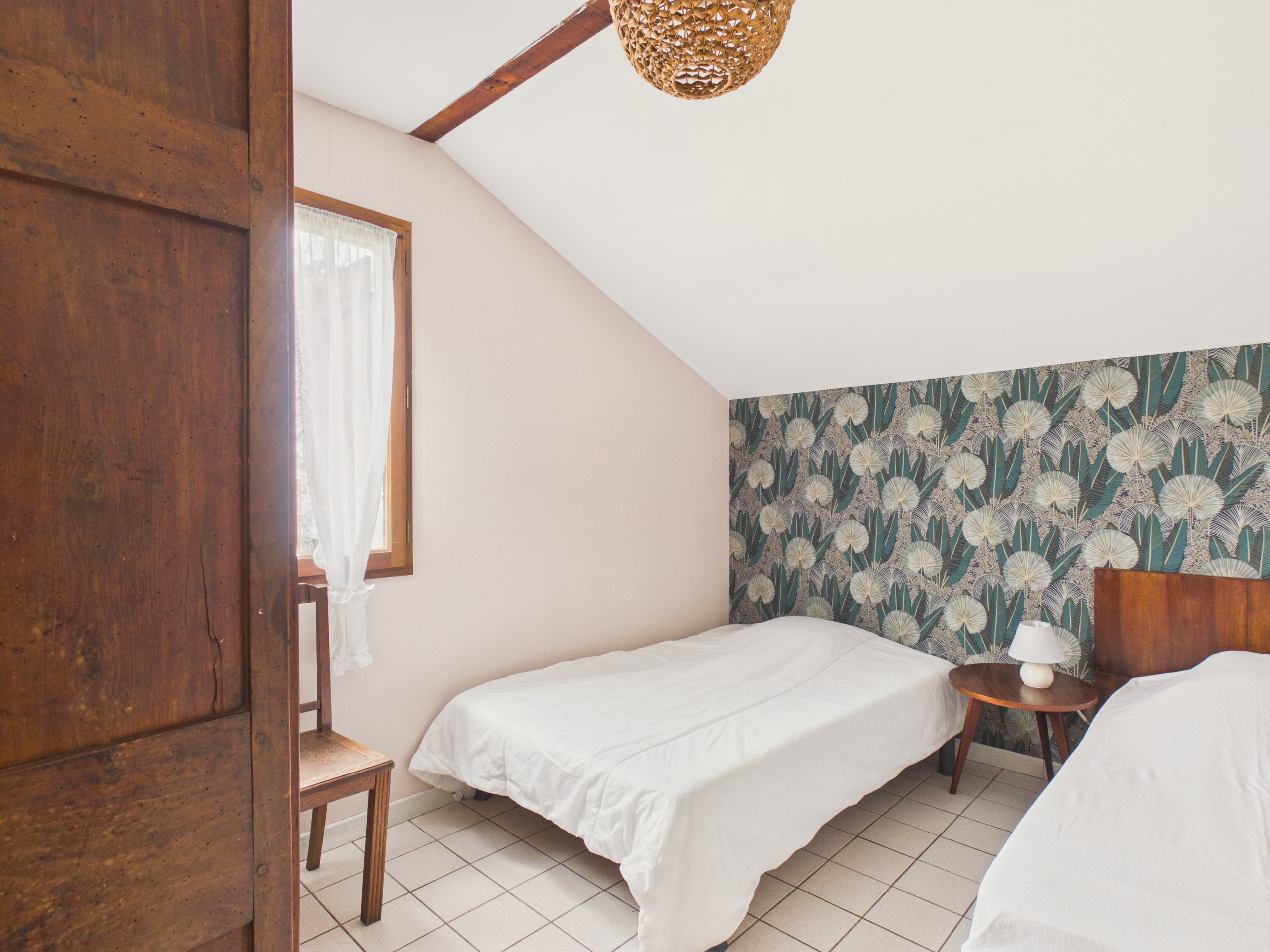 Once night has fallen, you can go and rest in one of the three bedrooms in the house. The master suite, located on the ground floor, has a large double bed, an opening onto the garden, an adjoining bathroom and a dressing room. Upstairs, two other bedrooms await you: the first with two single beds, ideal for children or a duo, the second fitted with a large double bed and a balcony.