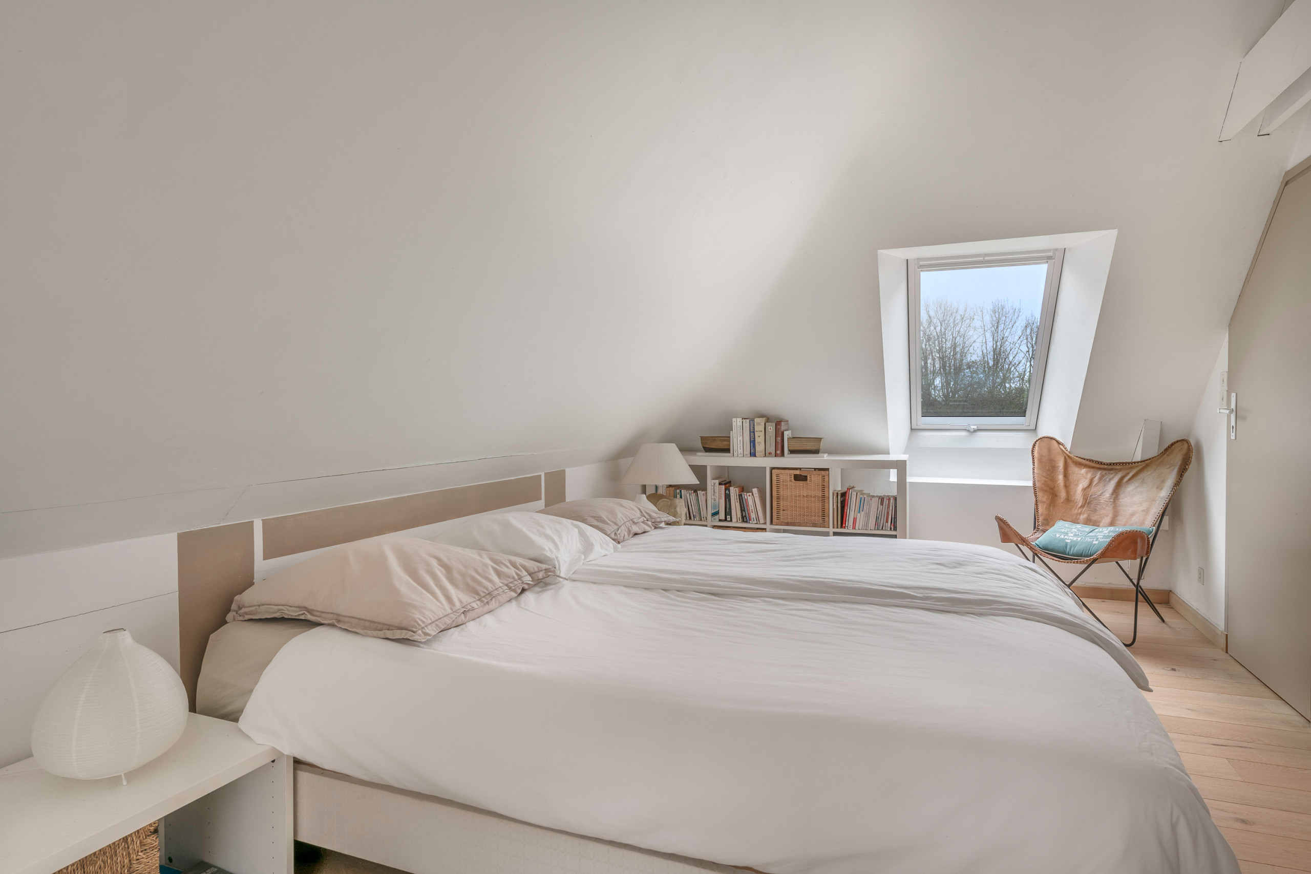 The house invites moments of conviviality and serenity, you can gather around a cup of tea in the living room, a bright and warm space, where large bay windows offer you an unobstructed view of the garden.
