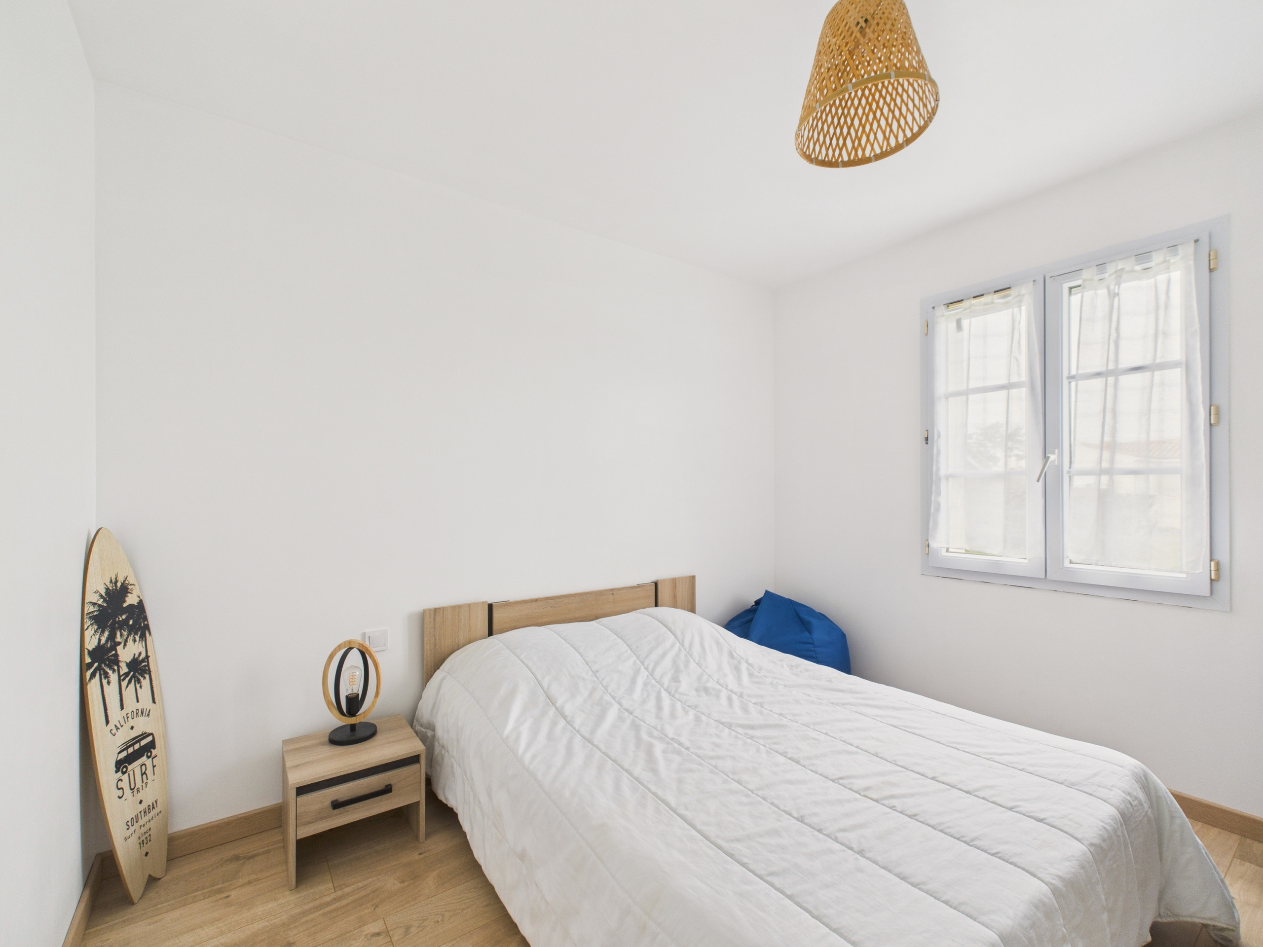 Welcoming 100 m² house in Barbâtre which has 3 bedrooms including a master suite, with a capacity for 6 people. It has a fenced garden, a beautiful 15m² terrace with garden furniture and barbecue, Internet access via WiFi, electric heating, television, iron, and a parking space nearby. The open-plan kitchen is very well equipped with induction hobs, an oven, a microwave, a refrigerator and freezer, a dishwasher, a washing machine, a coffee maker (Nespresso), a toaster, a kettle, and a citrus press.