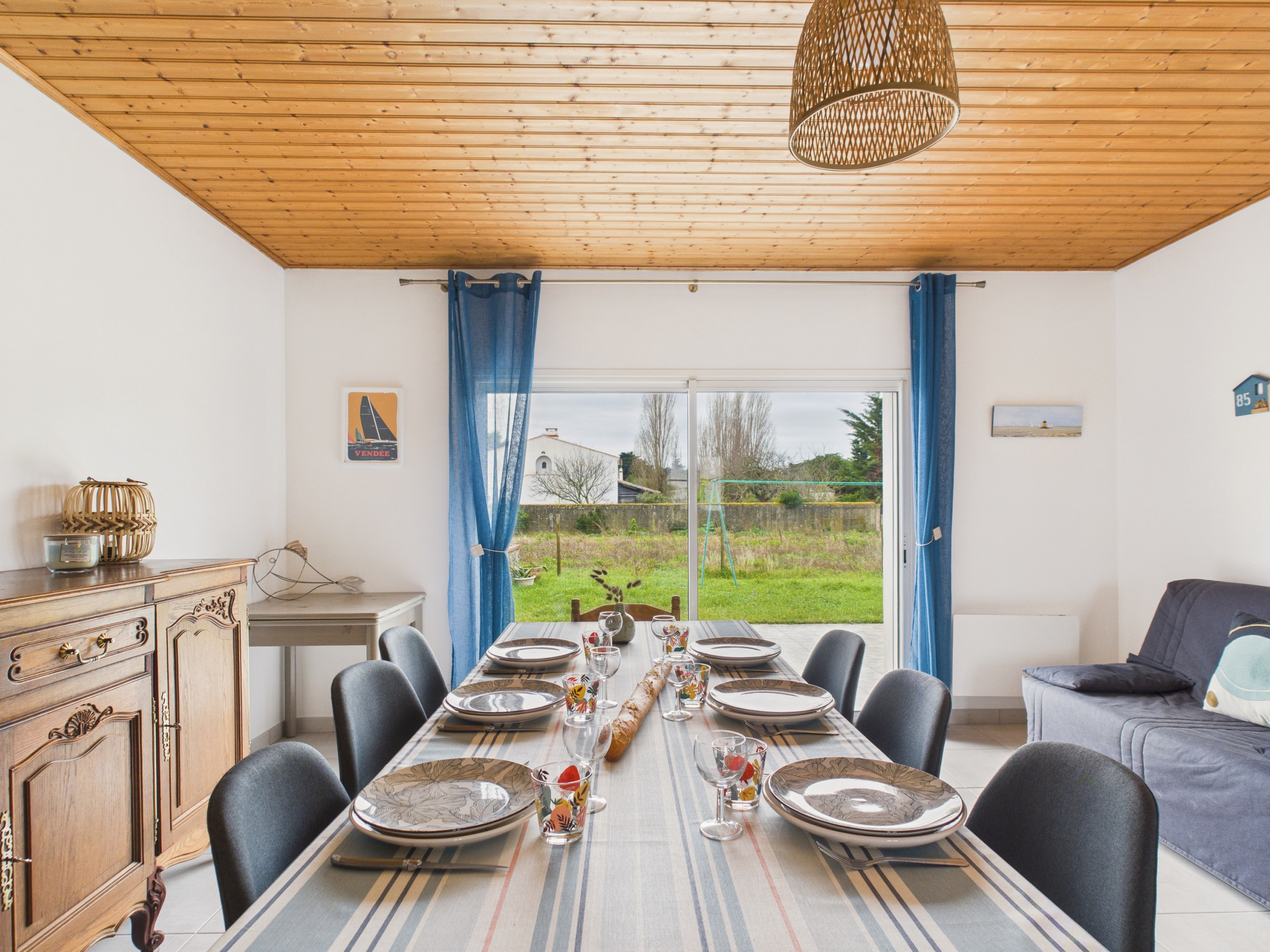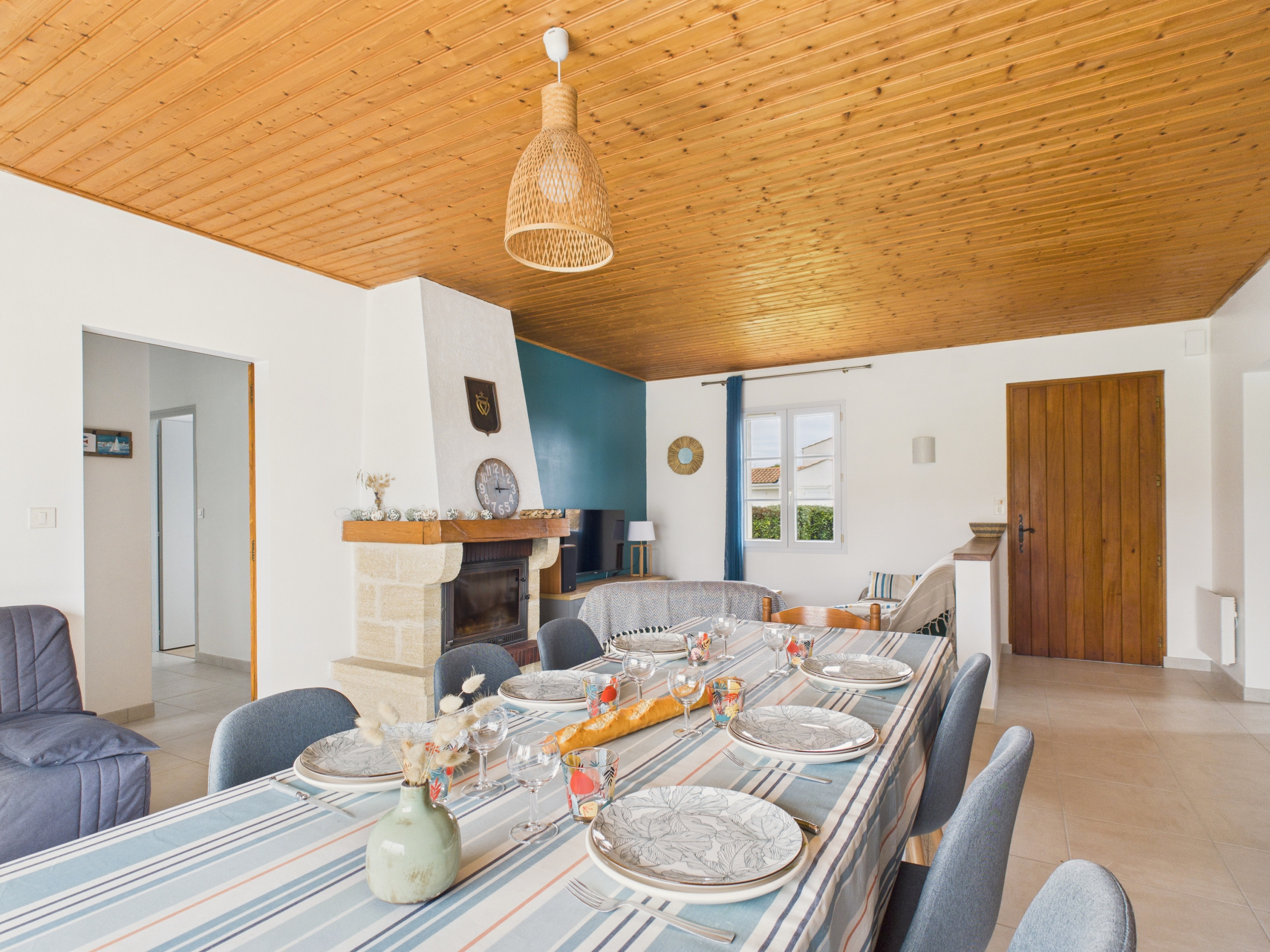 Push the door and discover a bright and warm living space. On one side, a living room corner with a television invites you to relax after a day spent with your feet in the water, whether around an aperitif, a good film or a sporting event. On the other side, a dining table for 6 people awaits you to share convivial meals with family or friends.