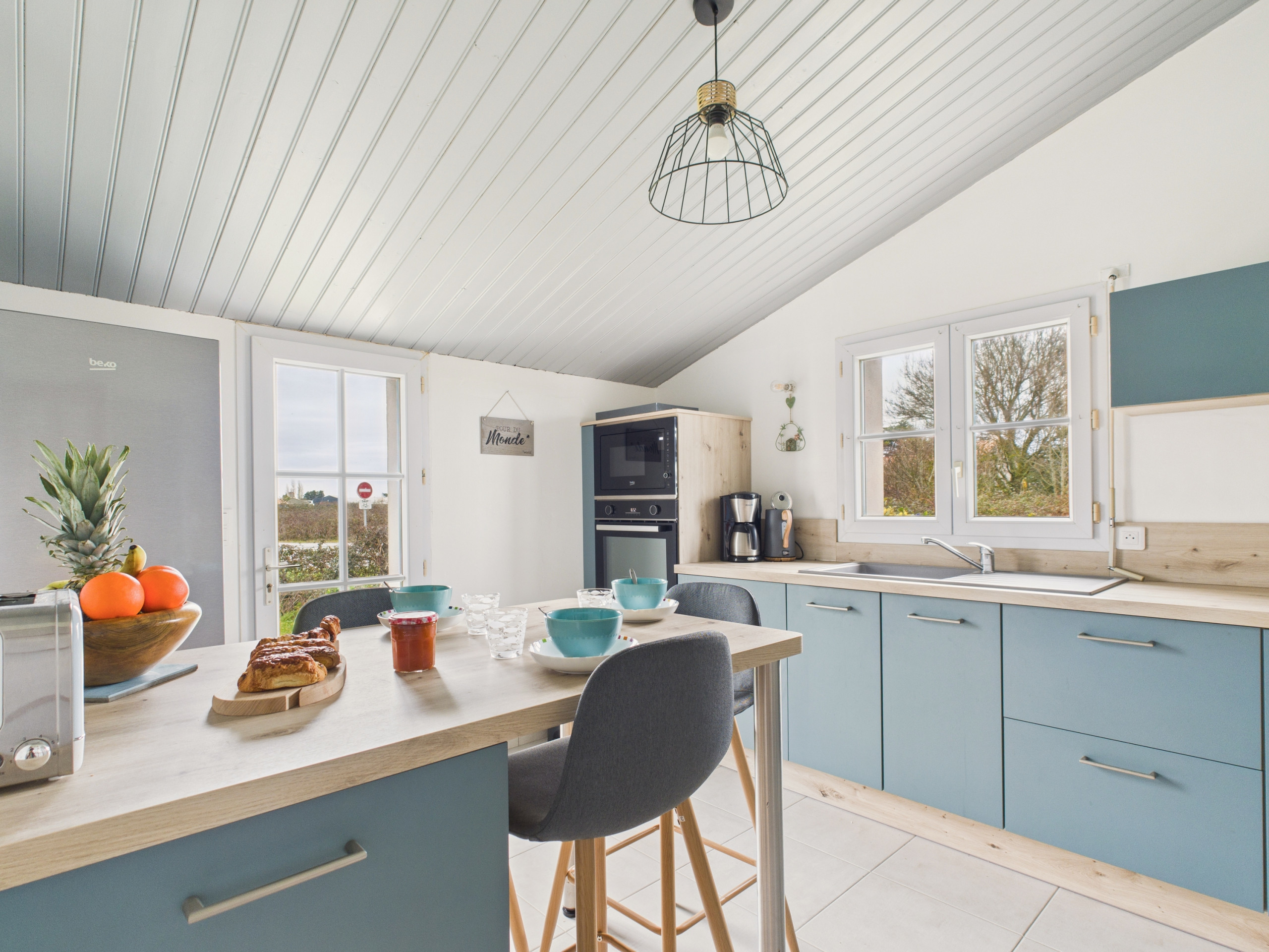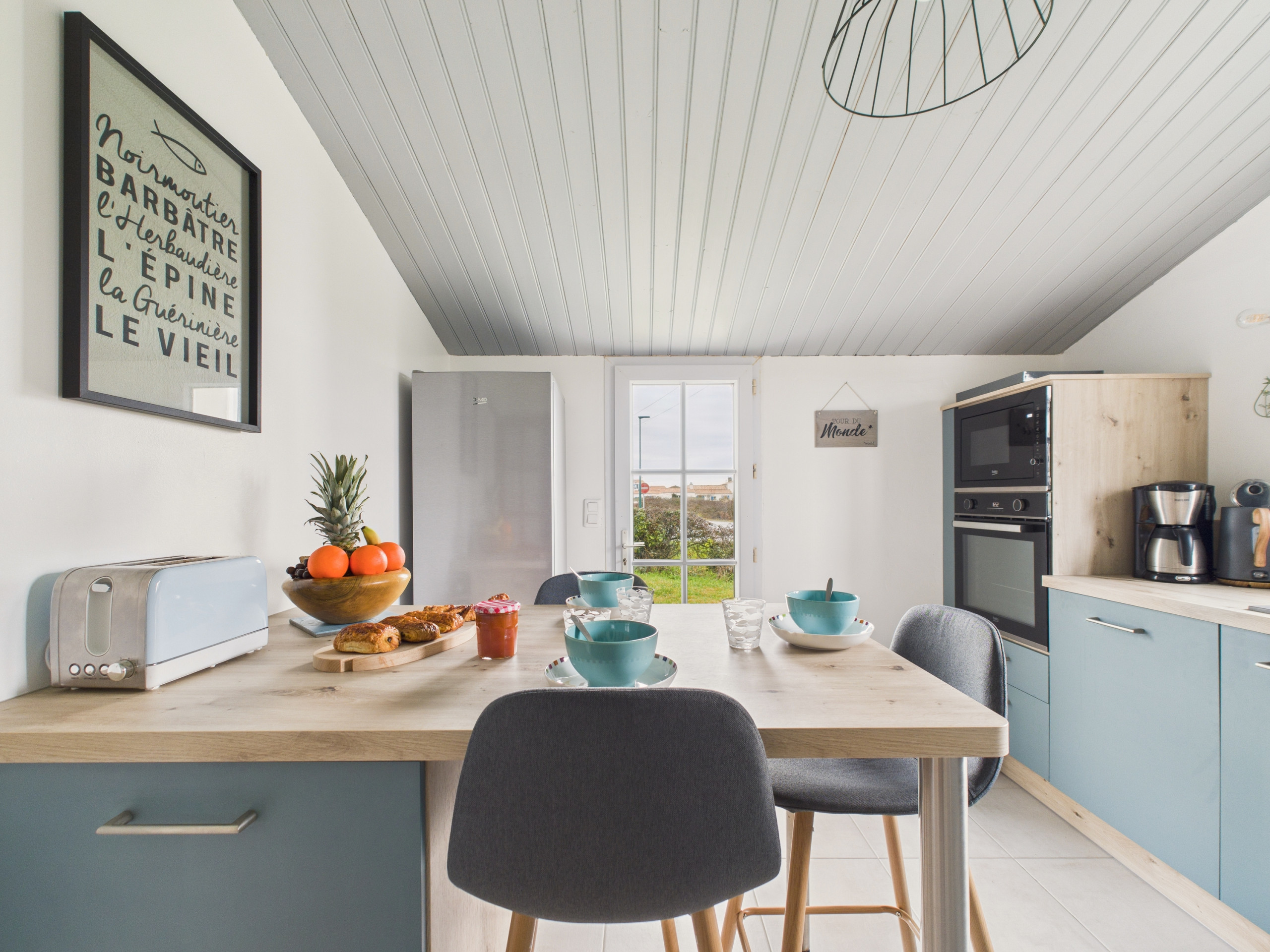The open-plan kitchen, overlooking the living room, is fully equipped so that you can prepare delicious homemade dishes: induction hobs, fridge-freezer, oven, microwave, dishwasher, Nespresso coffee machine, toaster, kettle and all the necessary utensils are at your disposal.