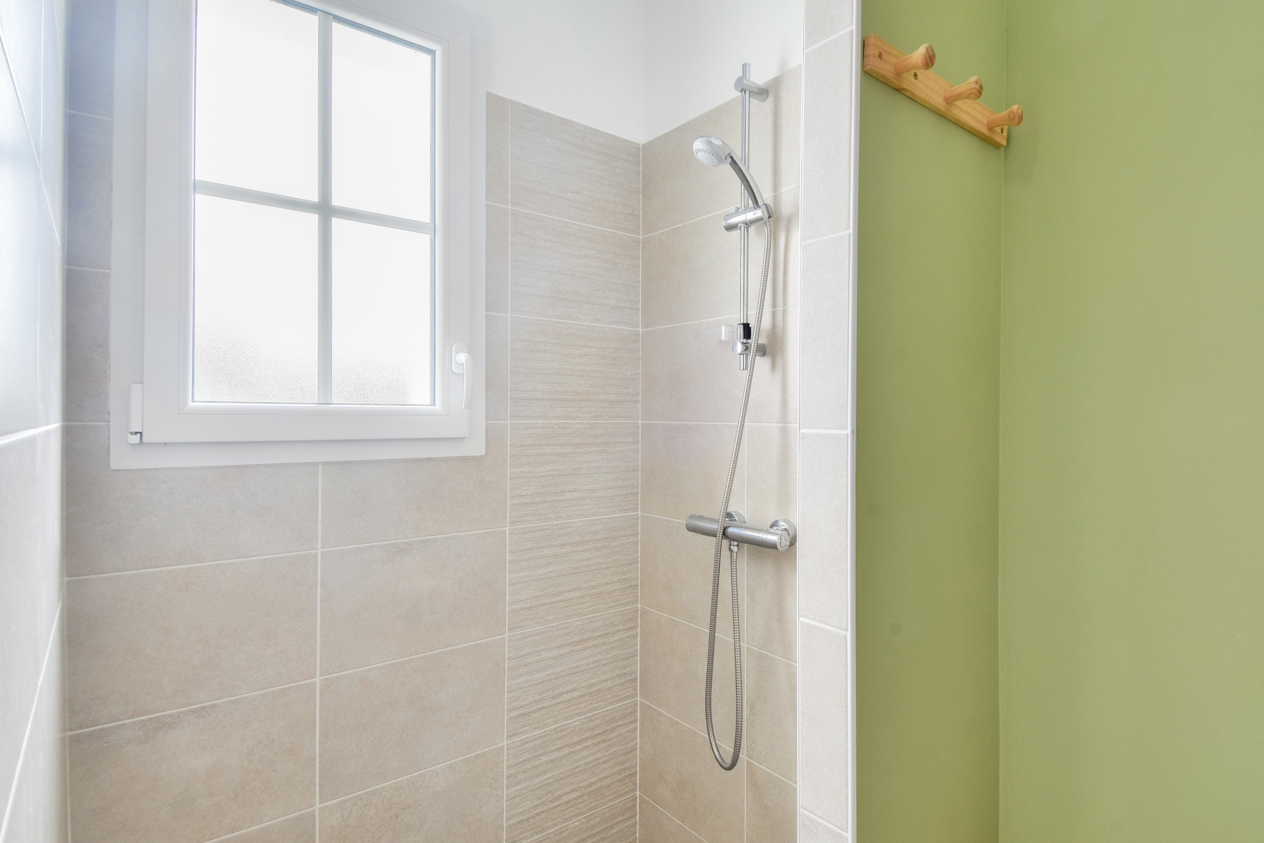 Inside, you will find a living room, a soothing corner, inviting you to settle on the sofa for a rest in front of a film on television (works with 4g key and smart tv applications only). Then, the dining room, with its wooden table, awaits you for moments of sharing and conviviality. Finally, the kitchen is modern and fully equipped, with an induction hob, a refrigerator, a microwave, an oven, a freezer, a dishwasher, a Nespresso coffee maker, a toaster and a kettle.
