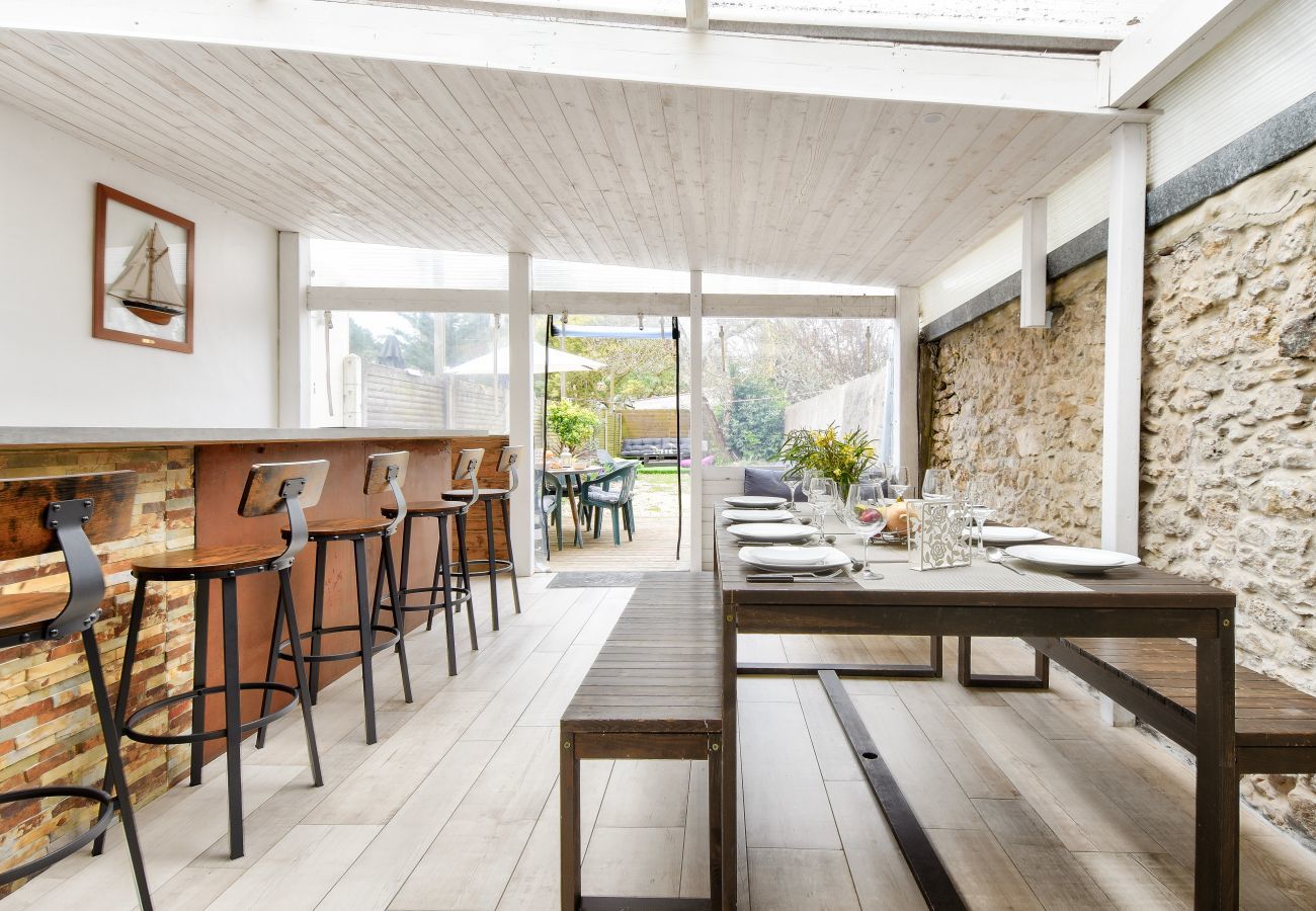 Come and discover Barbâtre, this commune on the island of Noirmoutier, for your next family or friends holiday. You can stay in this lovely house ideal for eight people. You will find a cosy garden with a sofa area, as well as a dining table with a barbecue to enjoy all summer long. A veranda with a bar area and plancha is also available, along with a dining table. Ideally located, the house is only 550 m from the first beach, nothing more pleasant and convenient to enjoy all day and why not admire a sunset on the beach.