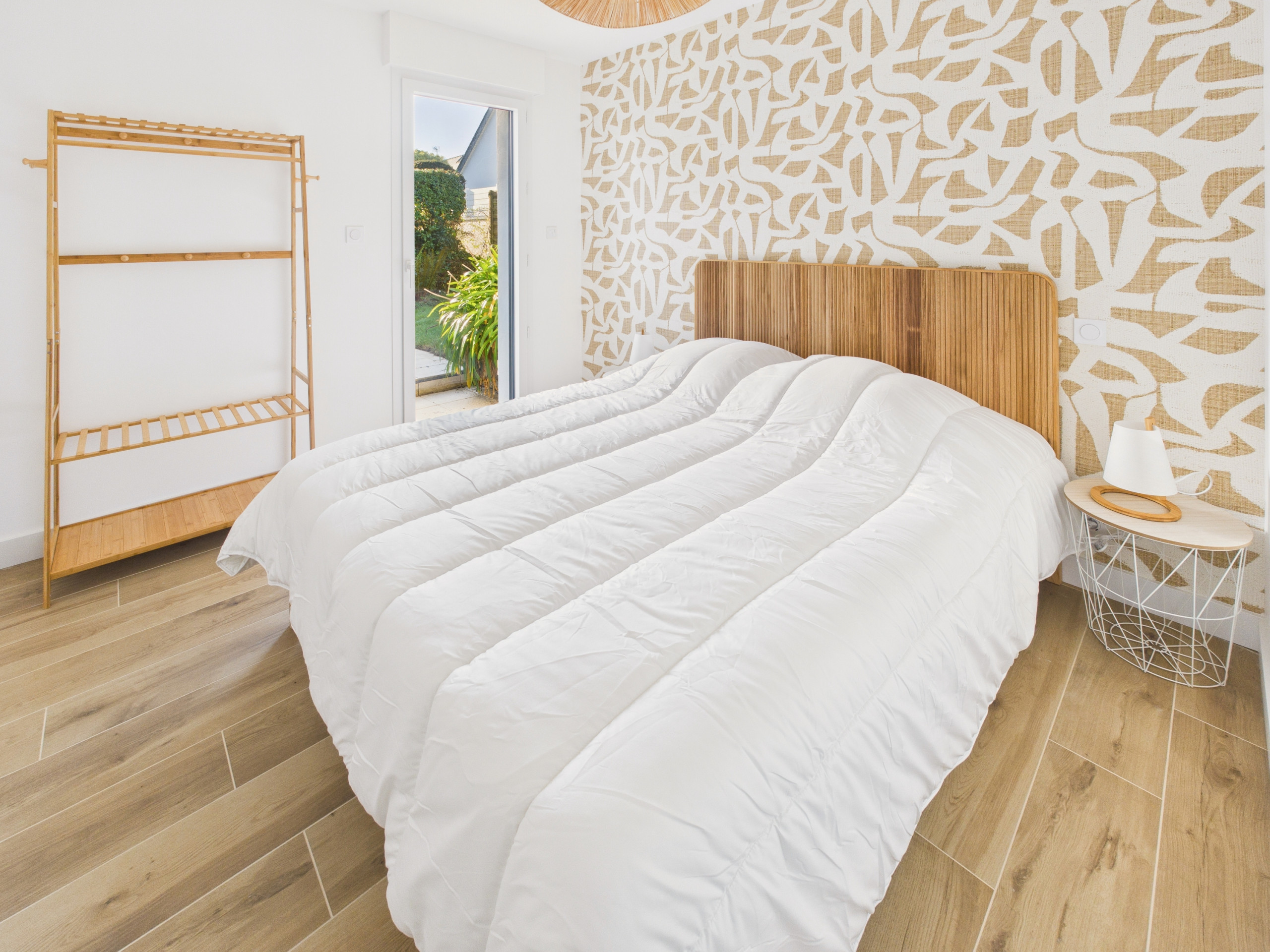 Bedroom 1 – ground floor: a Queen Size bed (160x200 cm), a clothes rack and access to the terrace