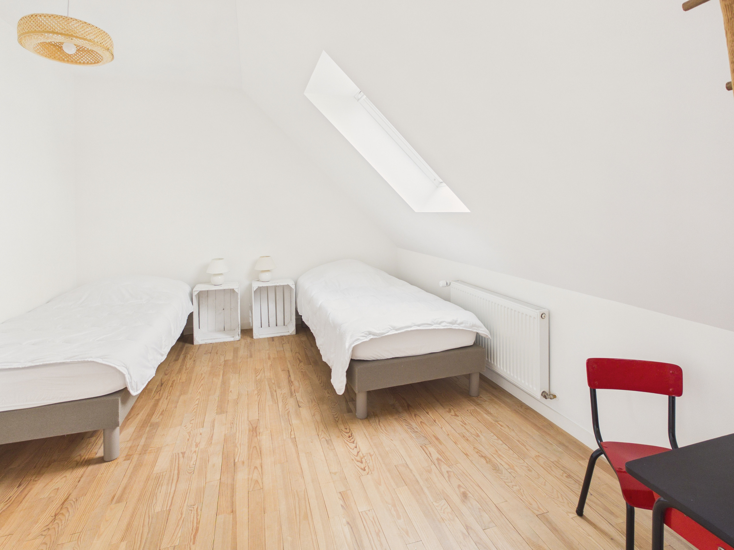 Bedroom 4 – upstairs: two single beds (90x190 cm) and a storage shelf.