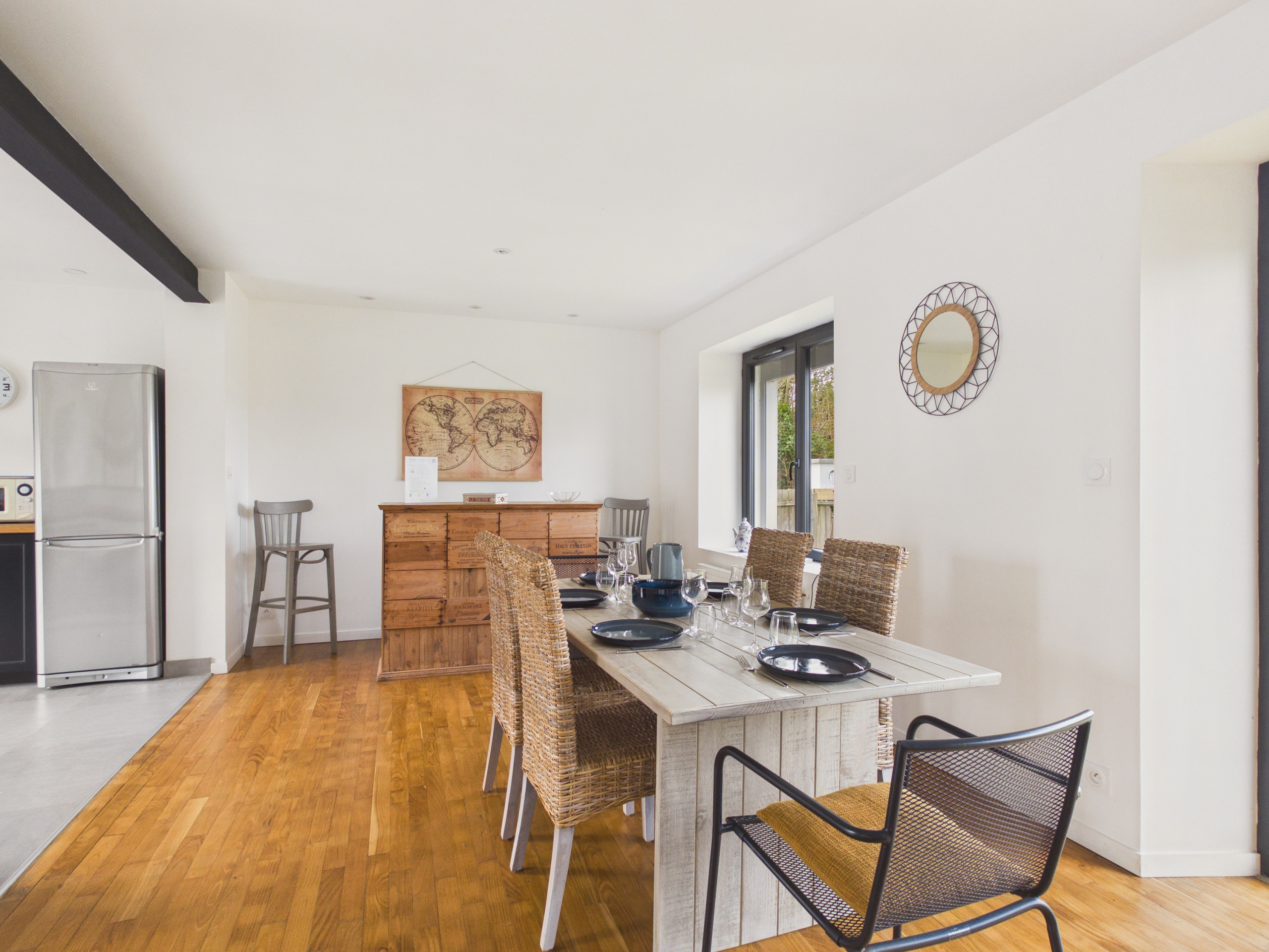 Come and discover Fouesnant, capital of the Breton Riviera, combining tranquillity and outdoor activities. Stay in a spacious and bright 160 m² accommodation, which can accommodate up to 6 adults and 1 child, ideal for family or friends' holidays. This house is located in town in a quiet neighbourhood, just a few kilometres from the beaches of Cap Coz, Beg Meil and Mousterlin. You can thus enjoy the beautiful beaches and numerous hiking trails at any time of the day! You will have a large garden and a 55 m² terrace, perfect for enjoying the sun from morning breakfast to sunset during aperitif. A plancha is also available for you to enjoy in the summer.