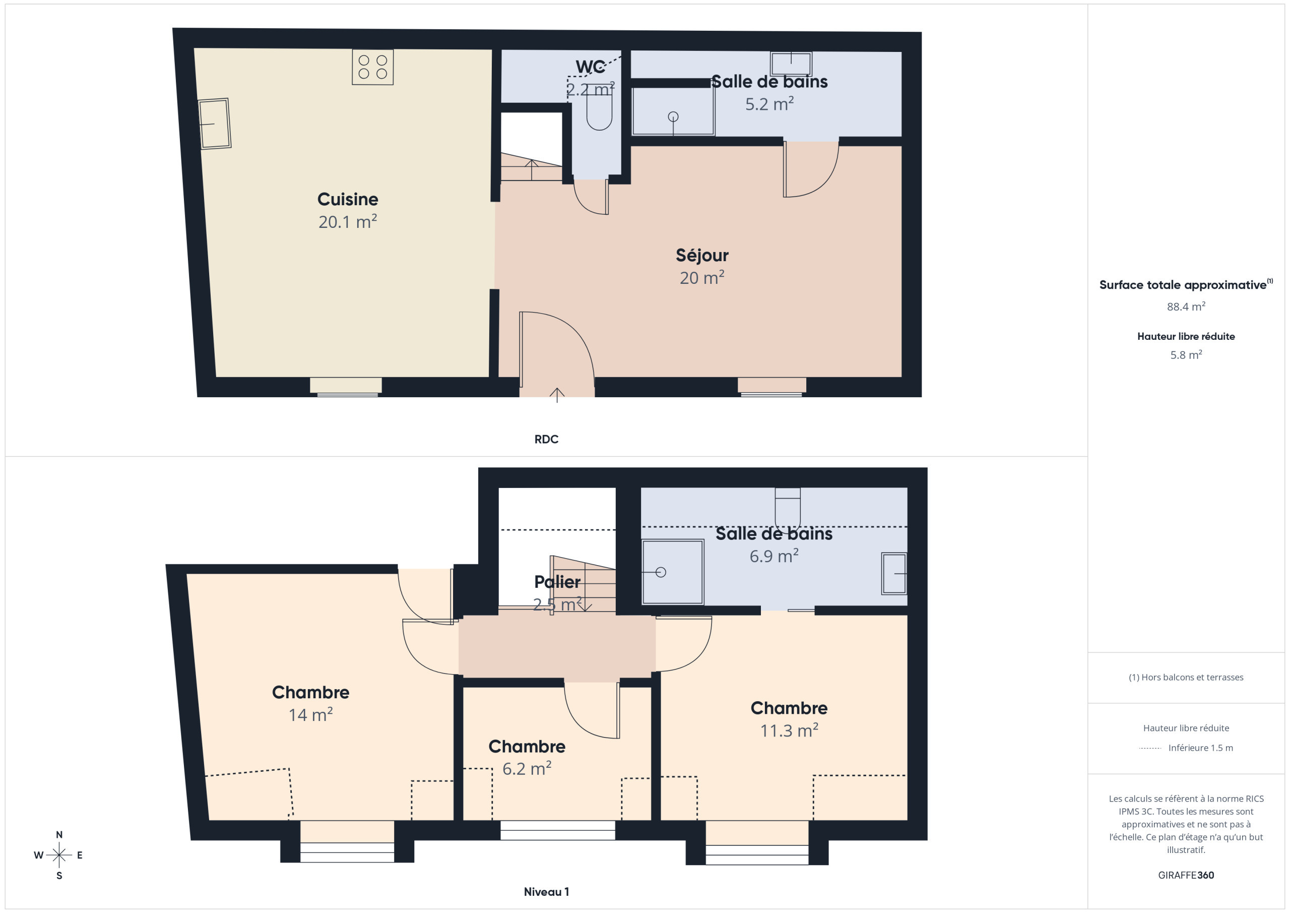 In addition, you will find on the ground floor a second bathroom with a shower and an independent toilet.