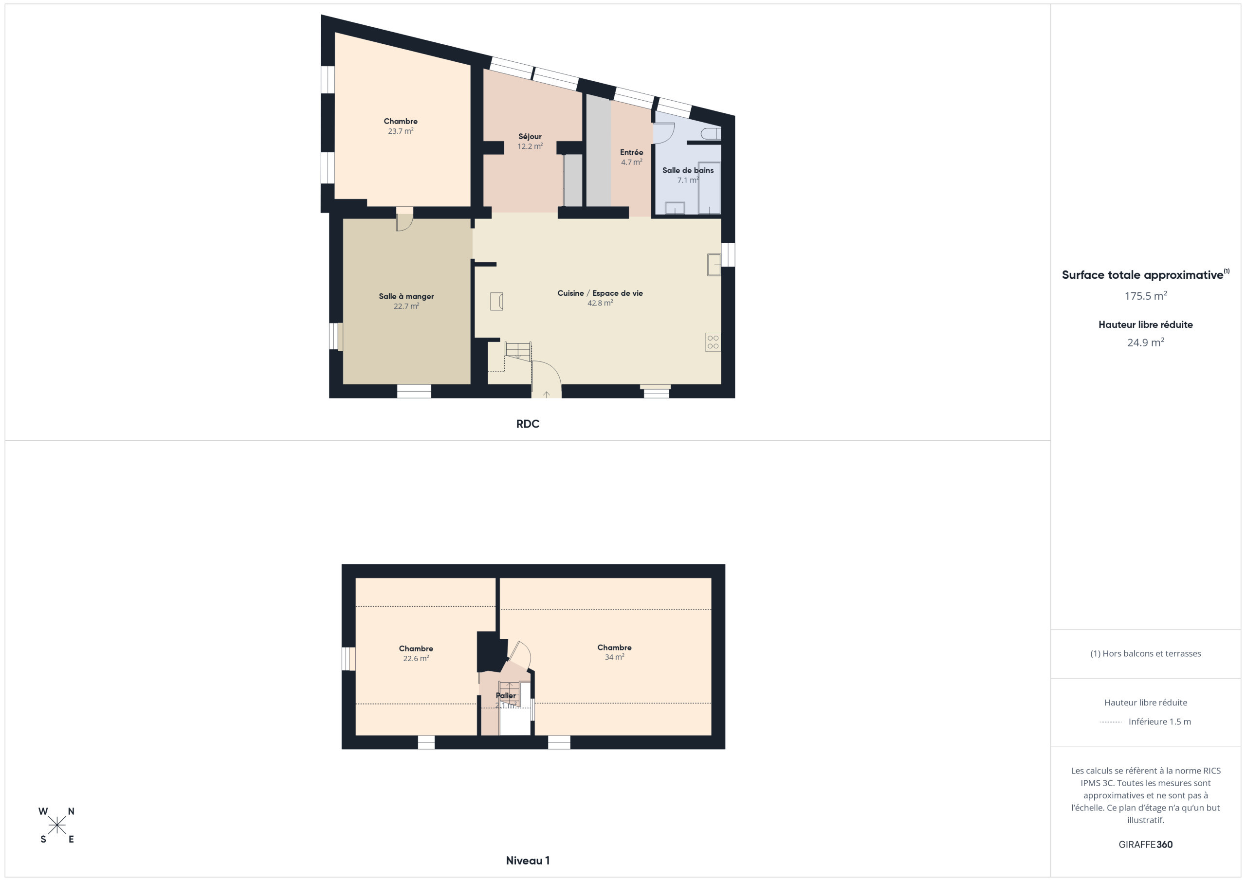 Bedroom 3 – upstairs: a large 22 m² bedroom with a king-size bed (180x190 cm) and a single bed (90x190 cm).