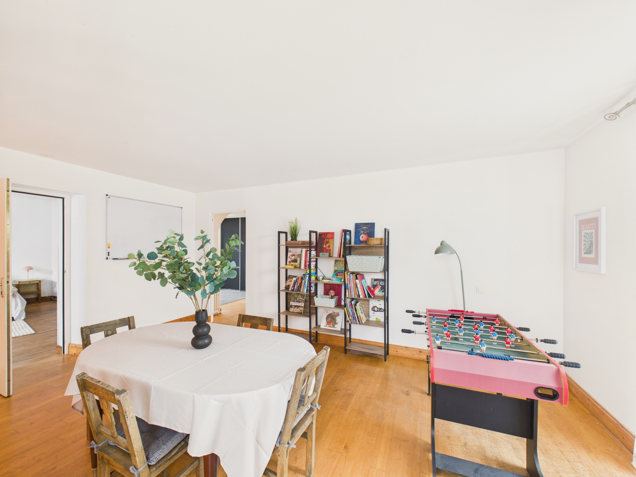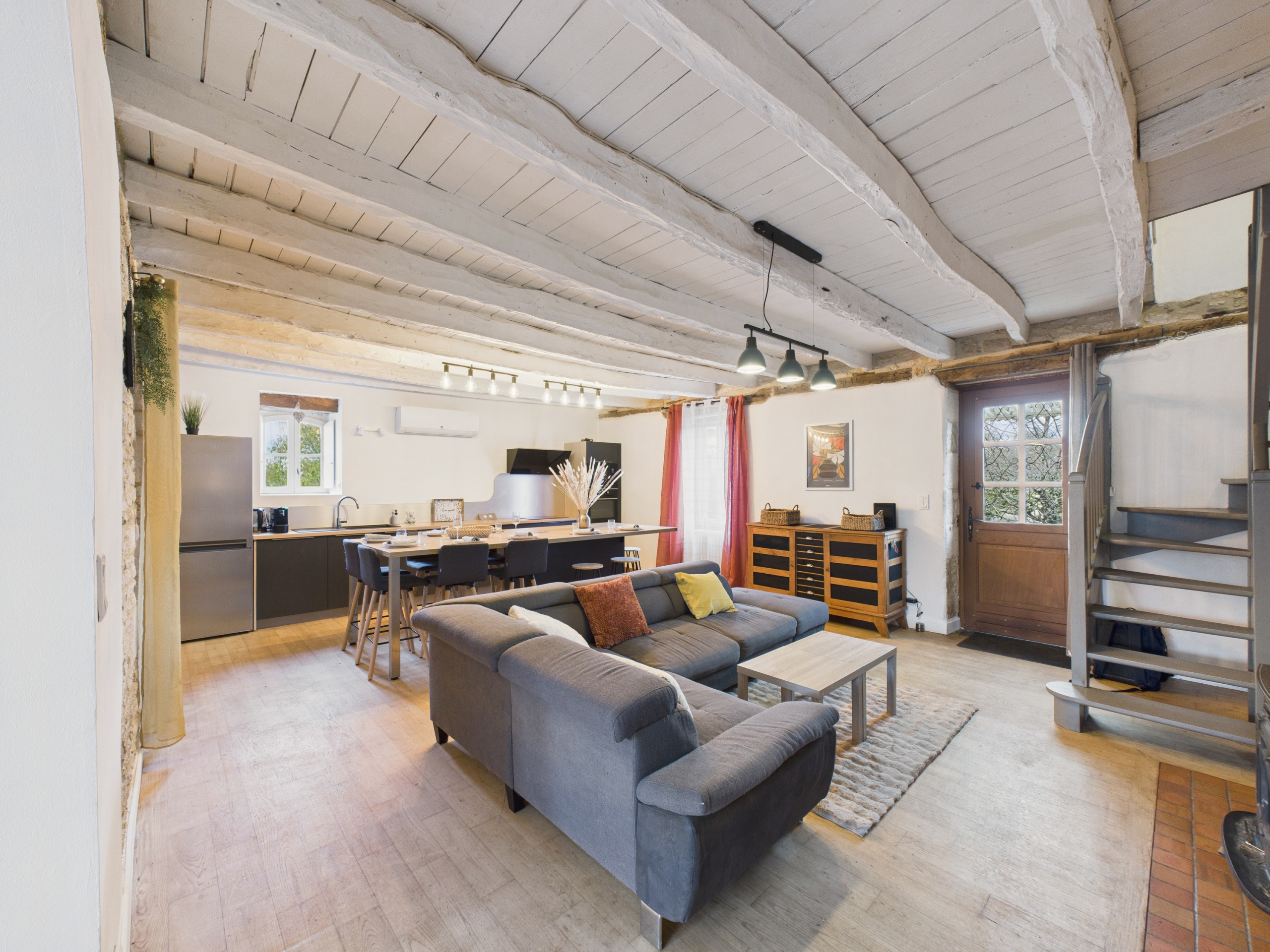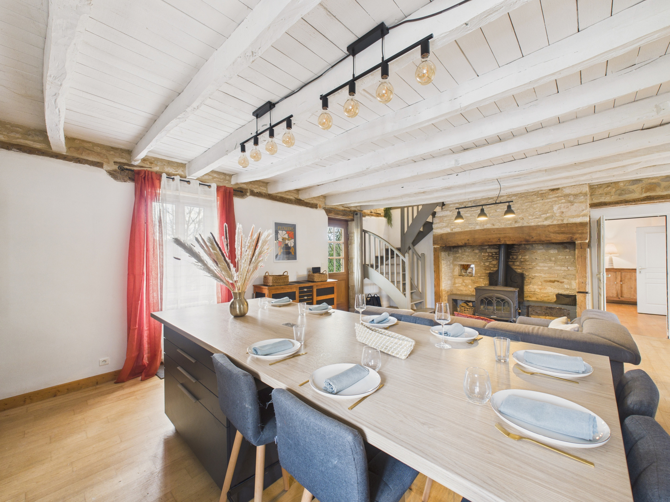 Inside, discover a large, beautifully decorated living space of 42 m². The open kitchen, fully equipped (refrigerator, freezer, oven, microwave, dishwasher and induction hobs), offers you everything you need to prepare your meals. For breakfast, a kettle and a Dolce Gusto coffee machine are also available. Share your meals around the indoor table or prefer the outdoor one on beautiful days. Enjoy the two living room spaces in the accommodation: one has a sofa and a television, the other a large sofa installed near the fireplace. Finally, a games room, with board games for all ages as well as books, is located at the back of the living space.