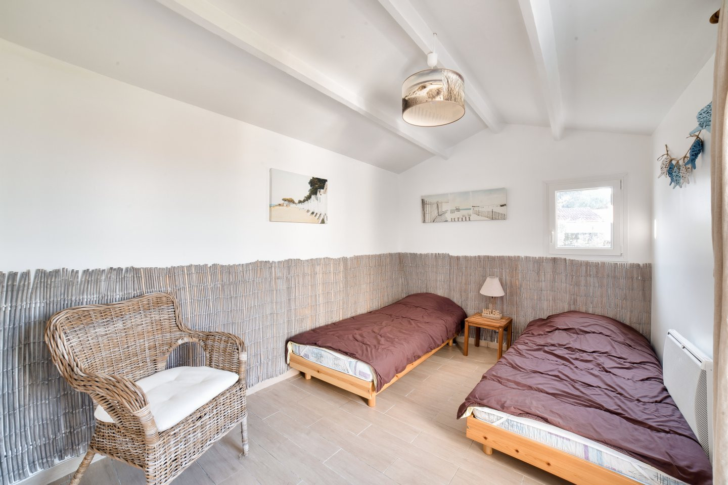 You are looking for a spacious and bright holiday home for your stay in La Guérinière? Look no further! Discover this magnificent 85 m² house that can accommodate up to 6 adults and 2 children. It has all the comfort you need to spend unforgettable holidays. You can enjoy the enclosed garden and its 35 m² terrace to sunbathe while doing crossword puzzles or to gather around the barbecue with family or friends to savour good grilled dishes. The living and dining area is a pleasant and cosy corner thanks to its exposed stone wall and wooden ceiling, you will love to meet there around a good meal, a board game or simply to chat. Then you will find an independent kitchen equipped with gas hobs and ready to use with a refrigerator, a microwave, an oven, a freezer, a dishwasher, dishes, cutlery, kitchen utensils, a coffee maker (Senseo and filter), a toaster and a kettle. The night area is divided into two parts, the bedroom with a bunk bed and a double bed with the shower room is located at the exit of the main house, thus offering more privacy. And finally, you will find two other bedrooms and a shower room with an Italian shower and WC in a second house on the same plot for an even more comfortable stay. To make your stay always more pleasant, the house also has a washing machine, a television, an iron and a hairdryer and two parking spaces.