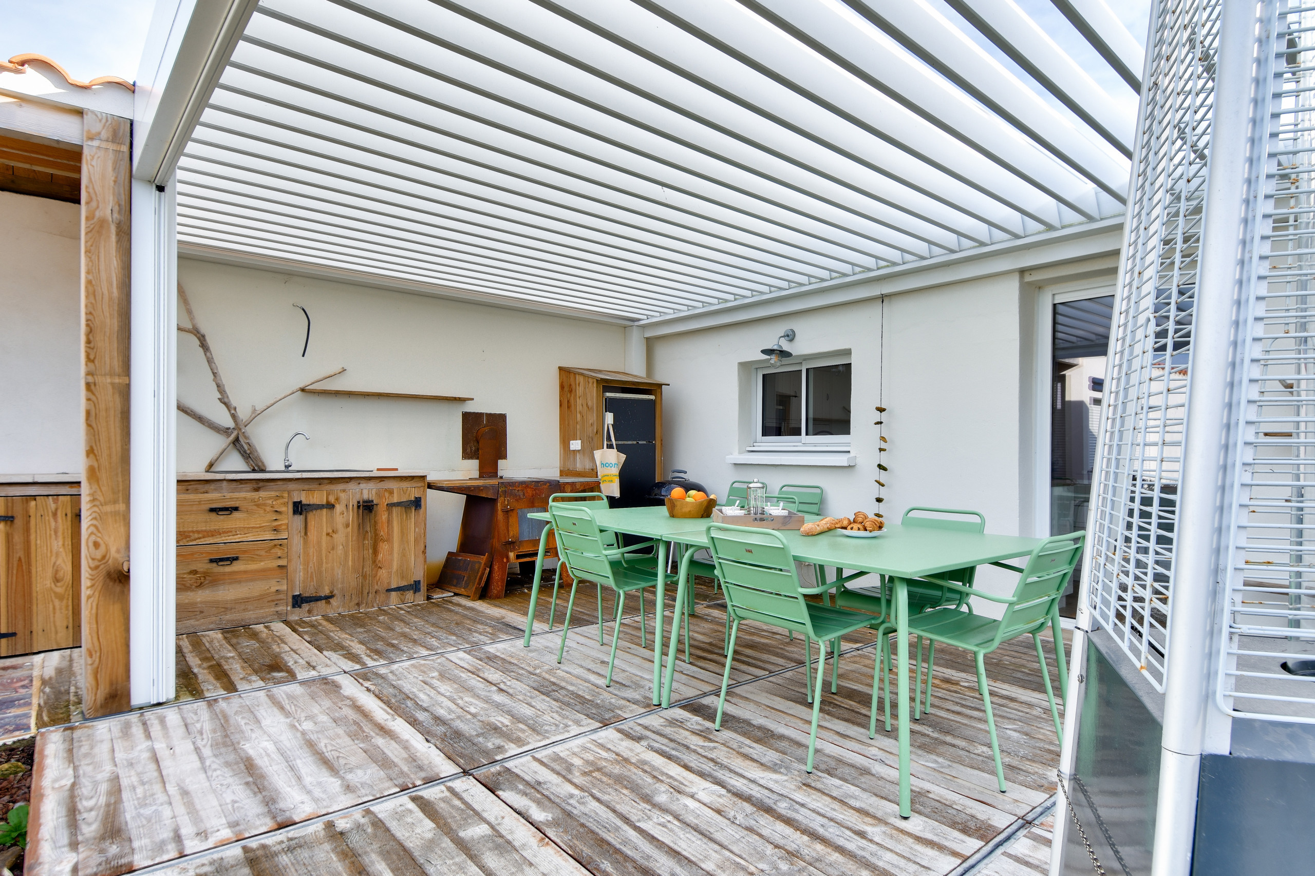 His garden and his beautiful wooden terrace with bioclimatic pergolas offer you many spaces to fully enjoy your holidays: sunbathing, reading moments, aperitifs, and barbecue area...