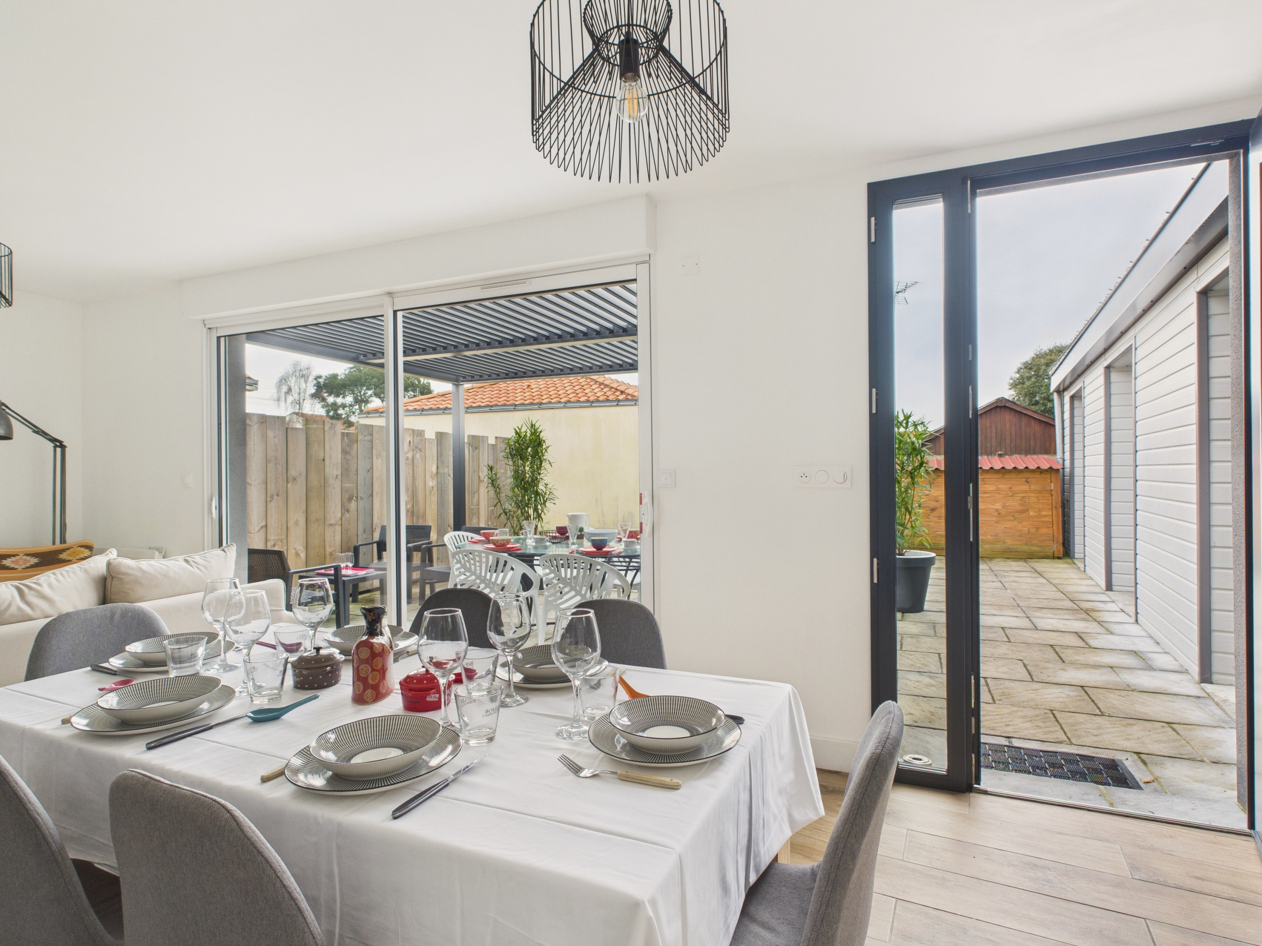 Located in a quiet area, 00 m on foot from the famous Cormier beach and 5 minutes by bike from all amenities (Tharon-Plage town, La Plaine-sur-Mer town, Préfailles), this single-storey house of 77 m², on a closed and secure plot of 195 m², has 3 double bedrooms (1 x 160 cm and 2 x 140 cm) and can accommodate up to 6 people.