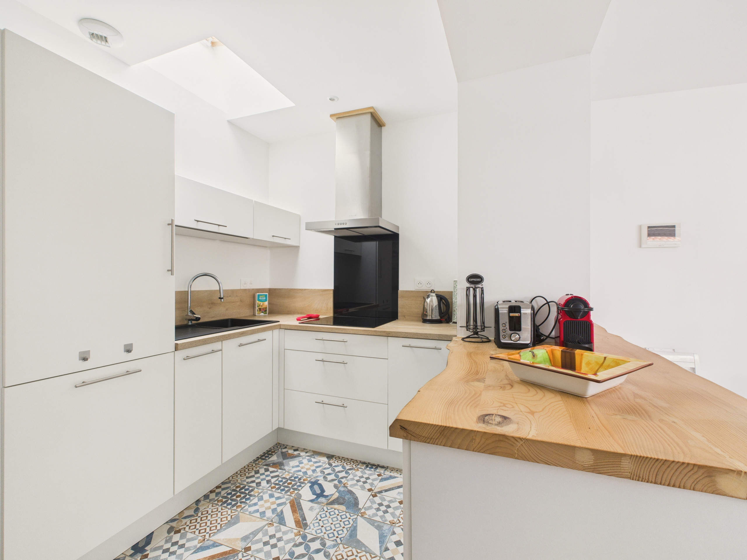 The living area includes a lounge corner with TV and Wi-Fi connection, as well as a dining room with access to the terrace. The open kitchen is equipped with all the necessary appliances to make you feel at home: fridge-freezer, induction hob, combined small oven, filter coffee maker and Nespresso, toaster and kettle. You will also have a bathroom and a separate toilet. A laundry room with washing machine completes the rental.