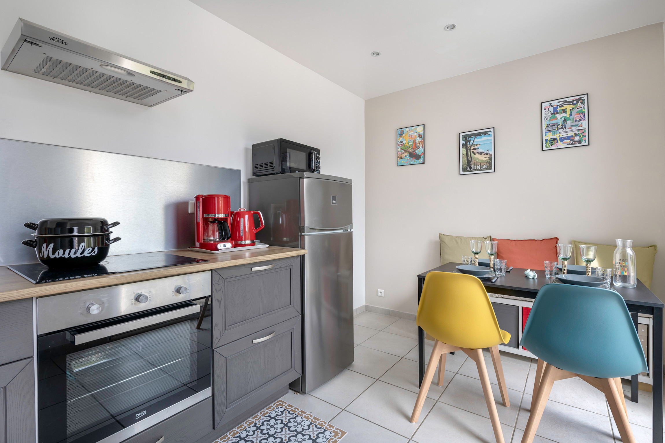 Calme de la location tout près de la mer, place de parking prive sur le terrain de la location, la,cuisine est très bien équipée.De plus location située près de la zone mytilicole ou l’on peut acheter huitres moules et fruit de mer à petit prix.