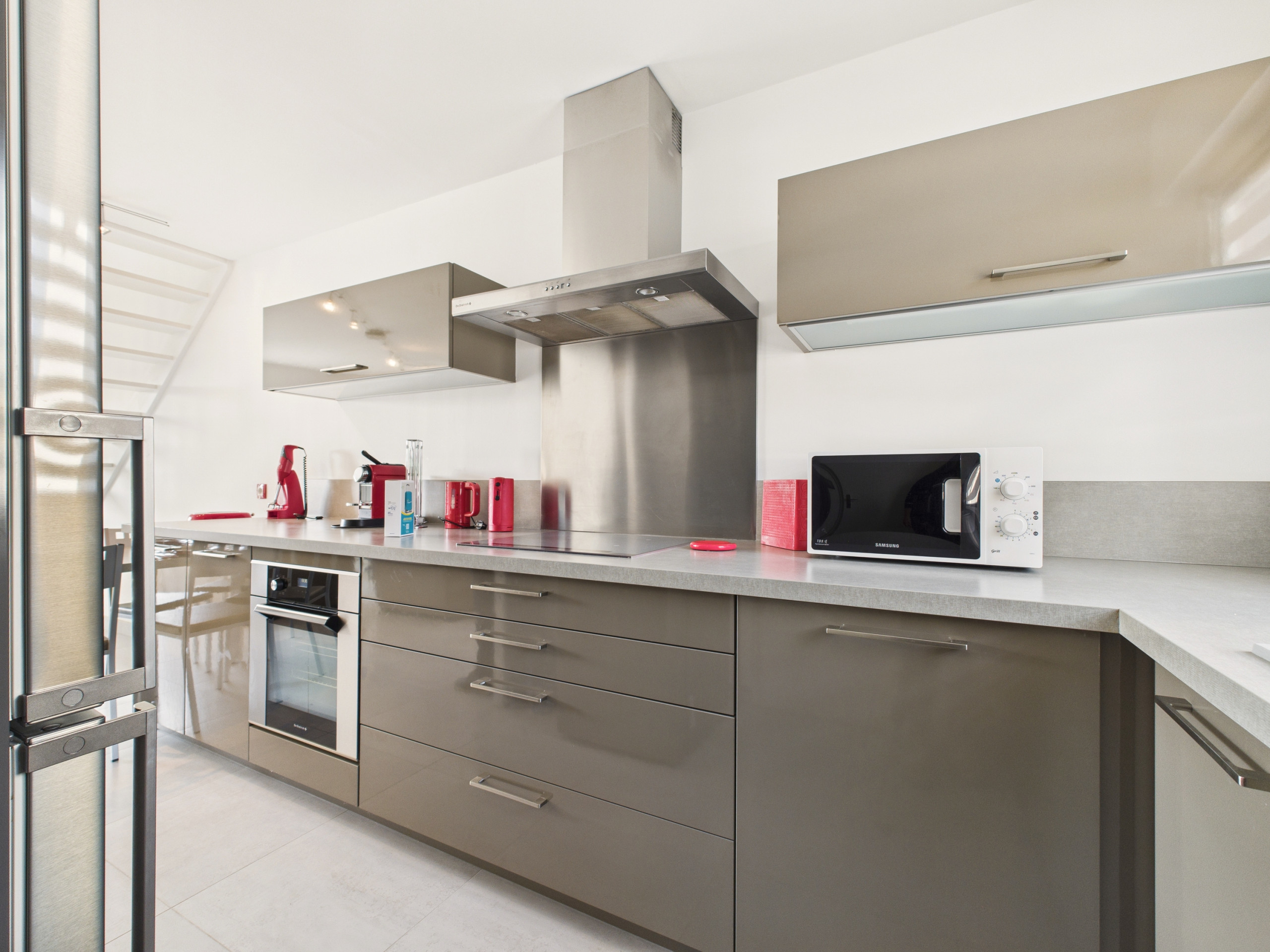 The independent kitchen offers everything you need to prepare delicious little dishes: induction hobs, refrigerator, microwave, oven, dishwasher, Nespresso coffee machine, kettle and all essential utensils.