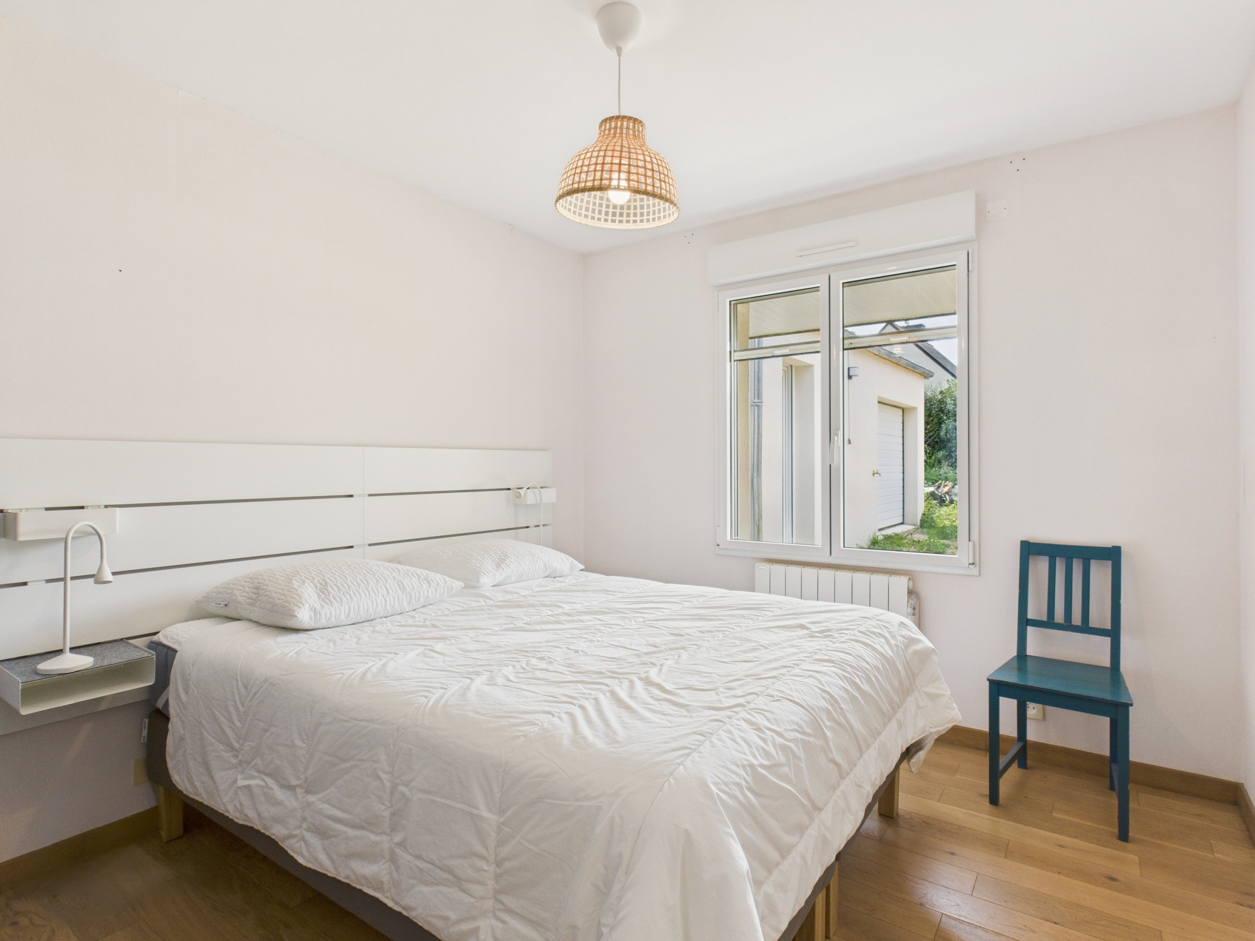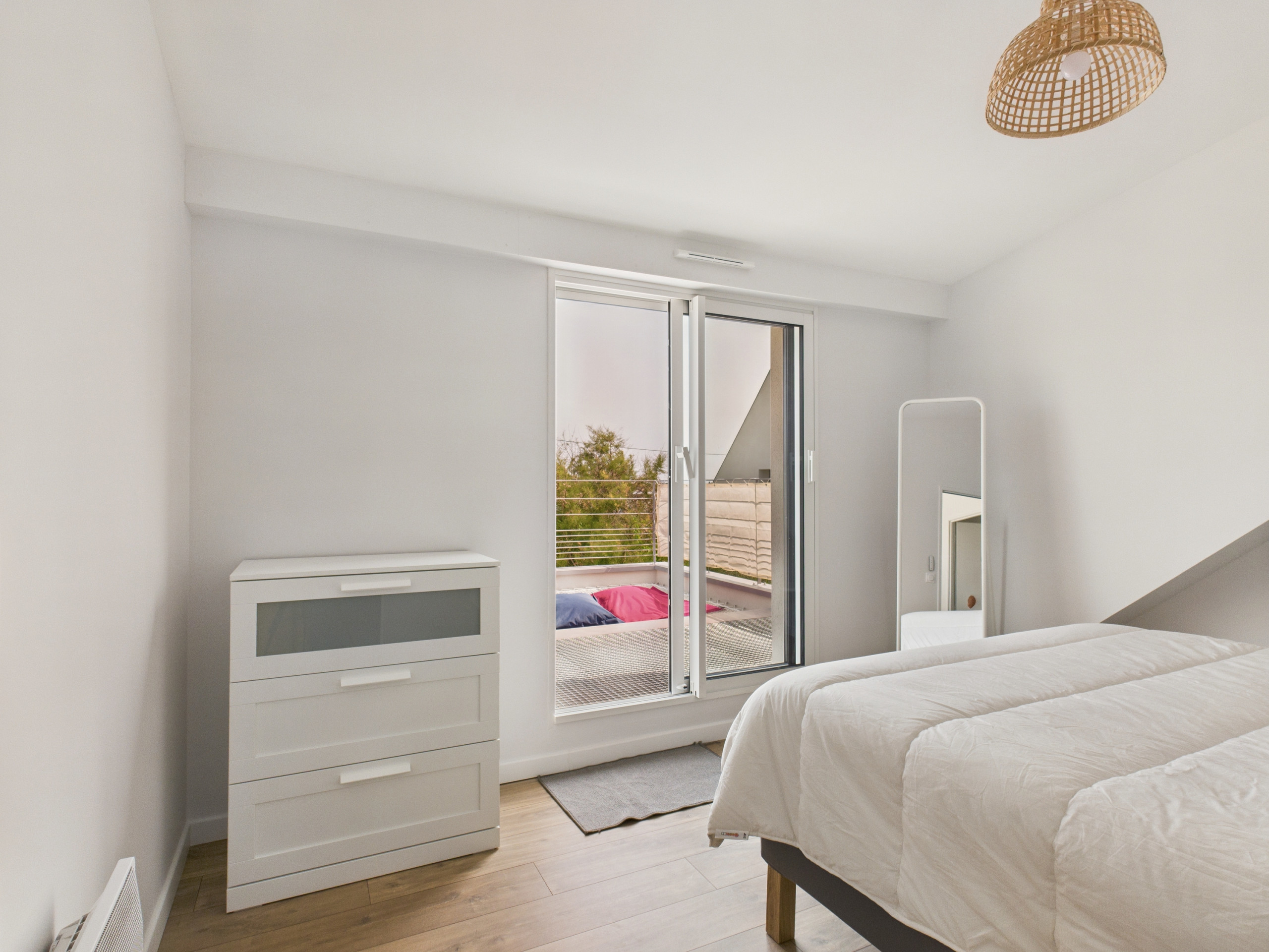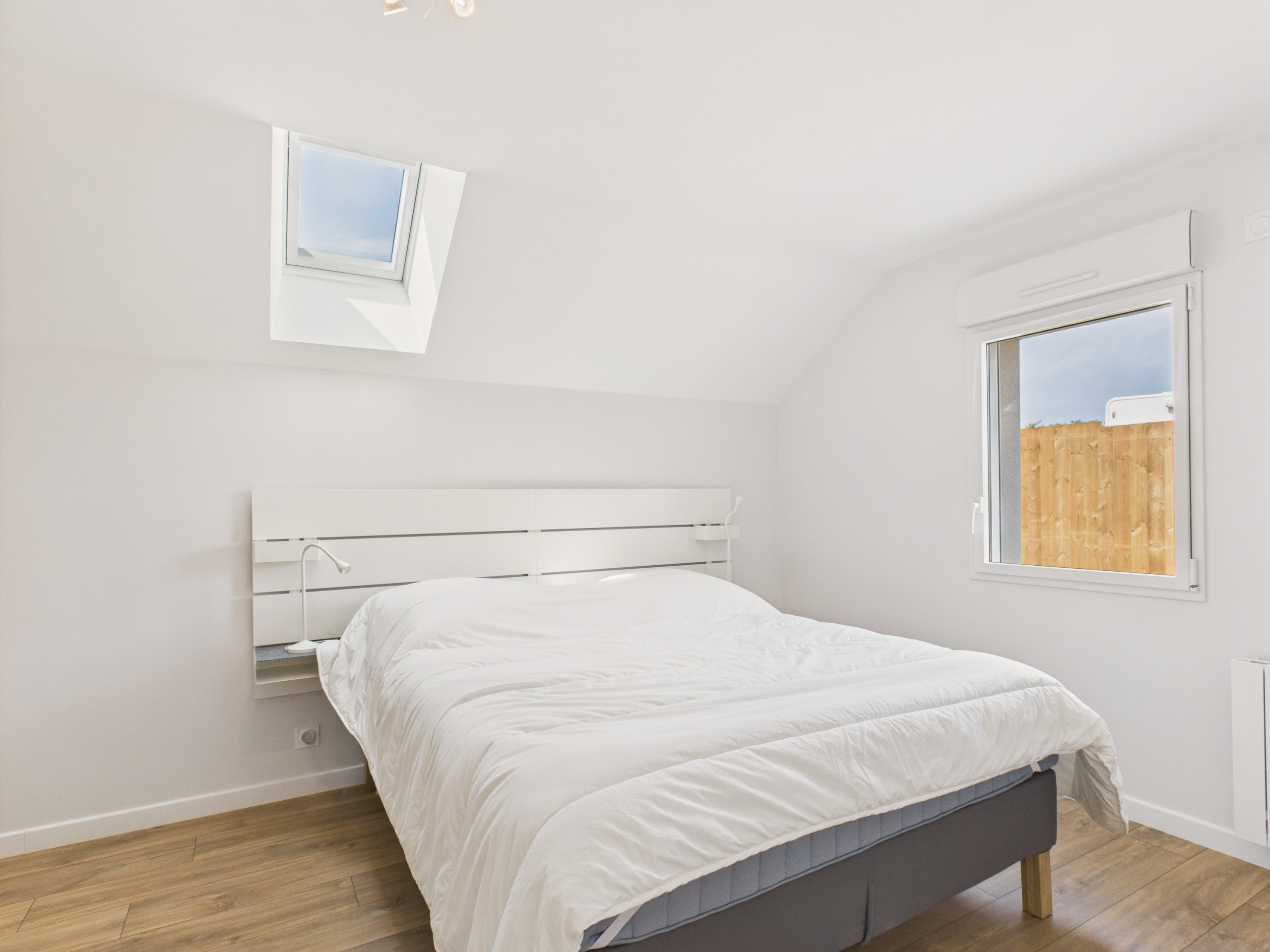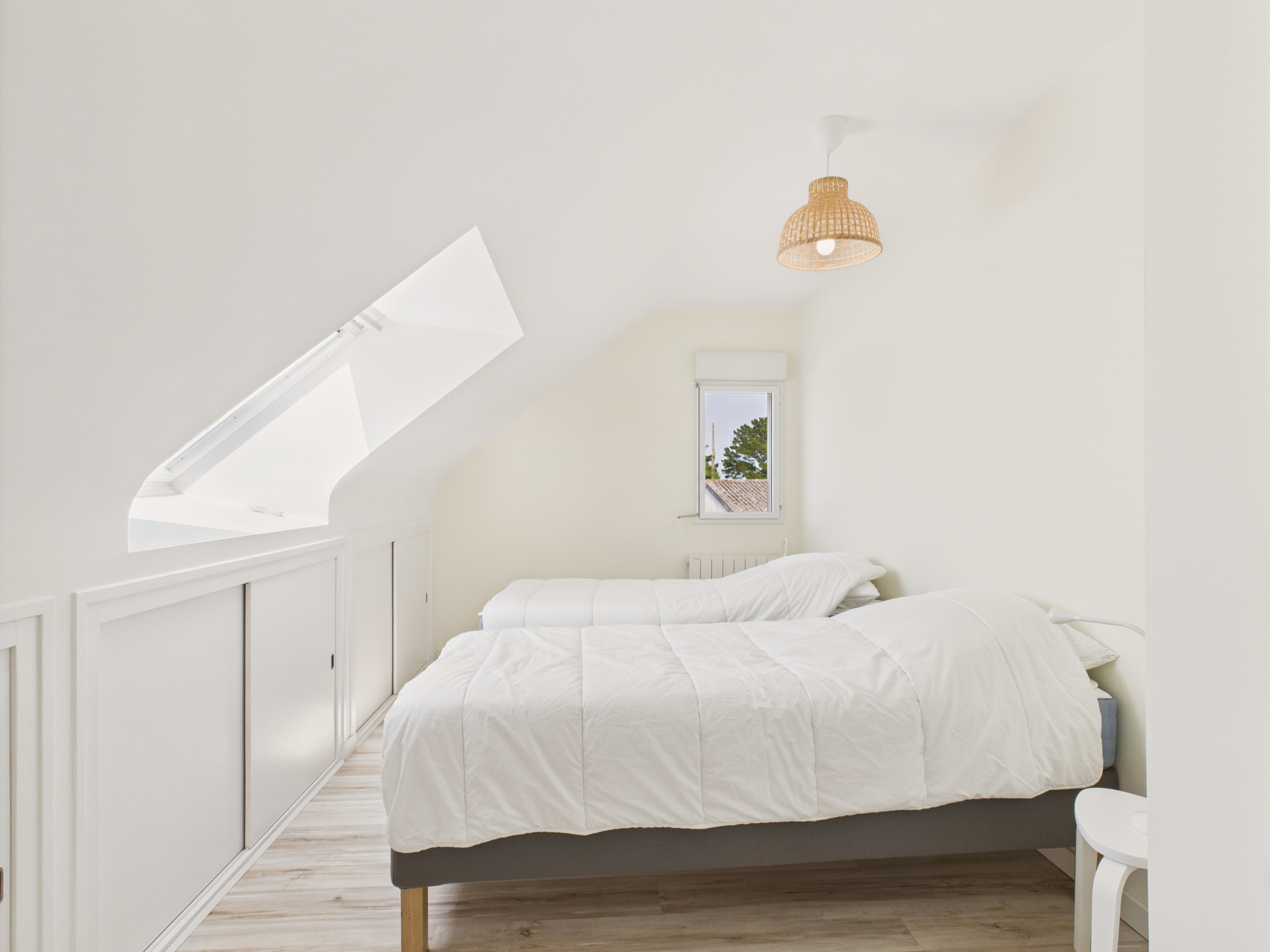 On the ground floor, you will find 3 bedrooms with Queen Size beds and storage space, one of which has an en-suite bathroom with a shower. Upstairs, 4 additional bedrooms: two with Queen Size beds (160x200 cm) and two with 2 single beds (90x190cm), ideal for children. A second living room with sofa, mini-fridge, washbasin and a 35 m² terrace with sea view completes the floor. A wi-fi repeater is installed upstairs.