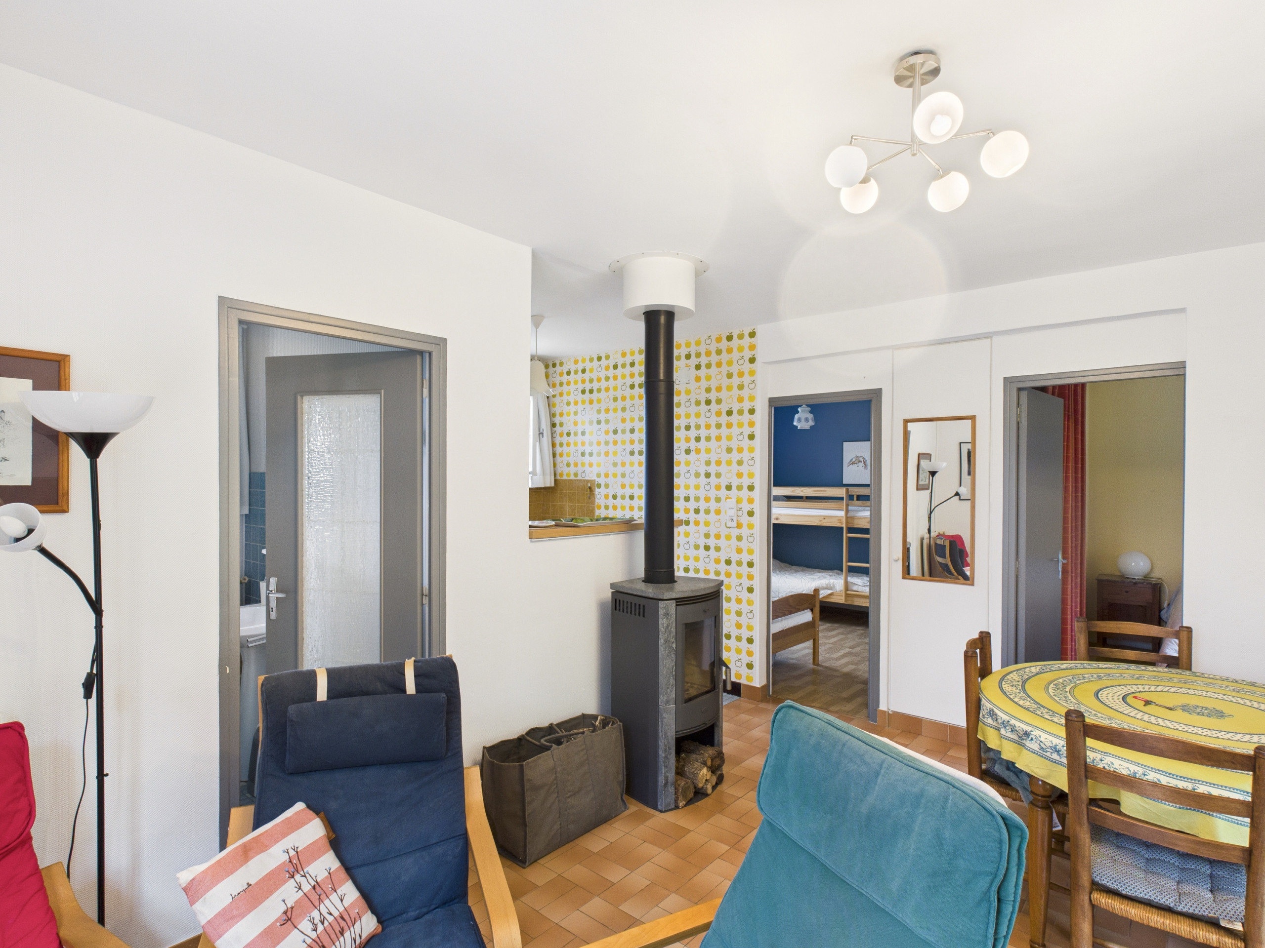 Bedroom 2: a single bed (90x190cm), a bunk bed (reserved for children) and a walk-in closet.