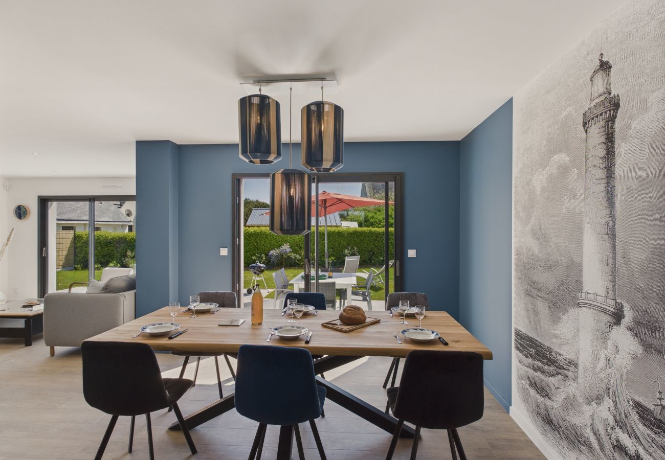 The charm of a beautiful stone house, a tasteful decoration, and a quiet environment: welcome to Loctudy! Here, idleness, relaxation and family time await you. The most? A 40m2 covered entrance hall, furnished and equipped with a ping pong table, a dart board and a sofa, perfect for rainy days!