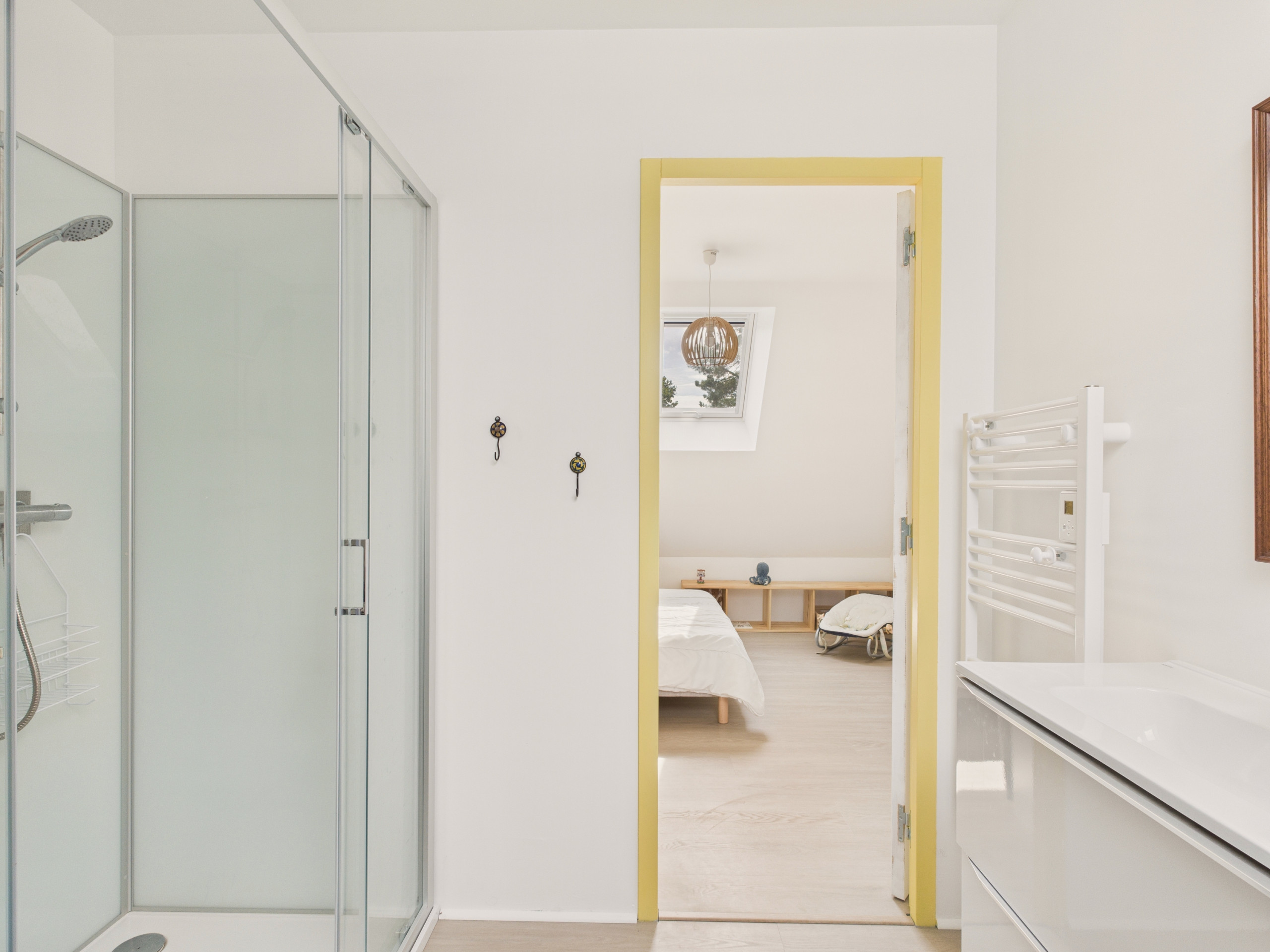 From the moment of your arrival, you will be charmed by the tree-lined garden that leads to the entrance of the house. Enter and discover on your right a pleasant, bright living space with its living room and dining room inviting you to gather around an aperitif or a friendly meal. A large bay window opens onto the fitted terrace and garden, ideal for enjoying beautiful days outdoors, having lunch in the sun or organising barbecues on the plancha in the evening. On the left, you will find an independent kitchen, perfectly equipped: induction hobs, refrigerator, freezer, oven, microwave, dishwasher, filter coffee maker, kettle, toaster and everything necessary to prepare delicious home-cooked meals.