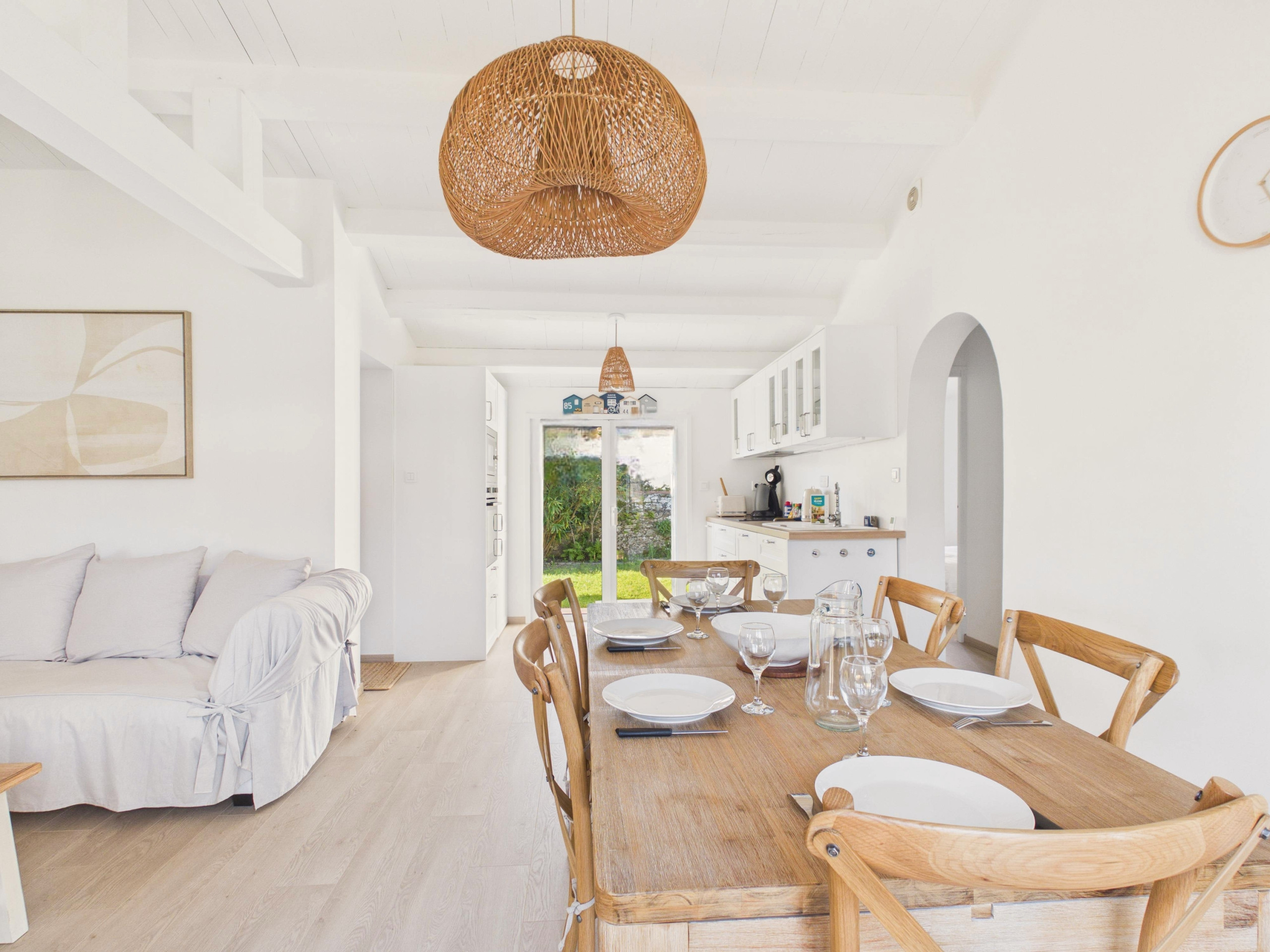Just a few steps from the beaches, at the edge of the "Bois de la Chaize", this pleasant house of 90 m² located in Noirmoutier-en-l'Île welcomes you for a stay with your feet in the water. Ideally located, close to the town centre and the most beautiful beaches on the island, it can accommodate up to 6 people in a calm and family-friendly environment, with a lovely view of the garden.