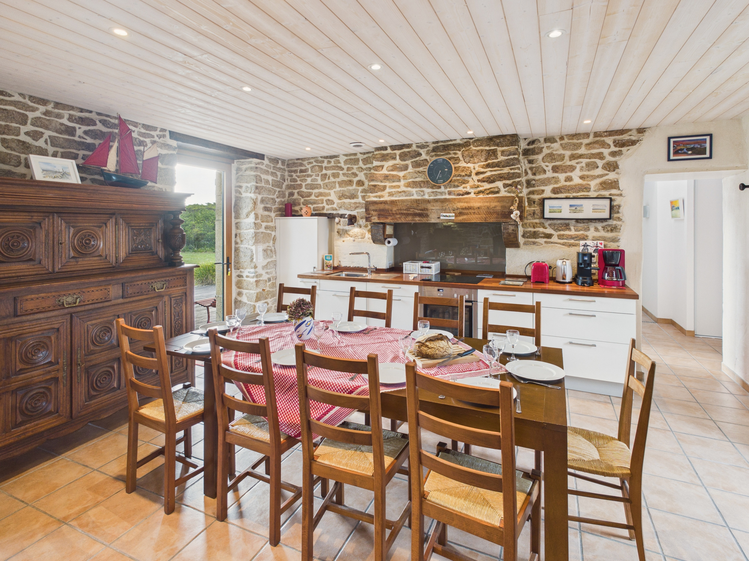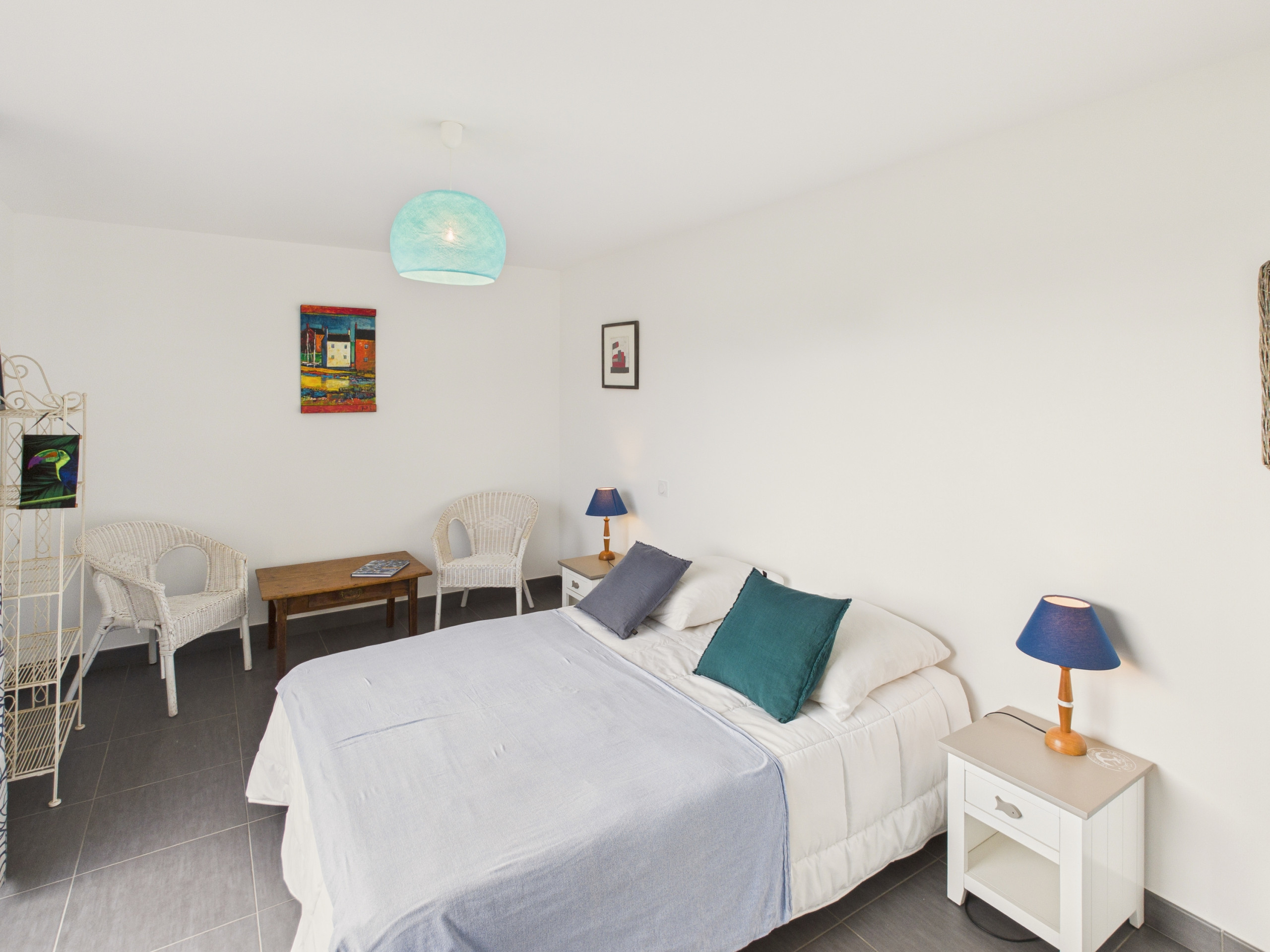 The living room is nicely decorated, the large dining room table offers a view of the garden and makes you want to gather there to share good food and moments of conviviality, then the living room is a cozy place to gather to play board games or to watch a good movie on TV.