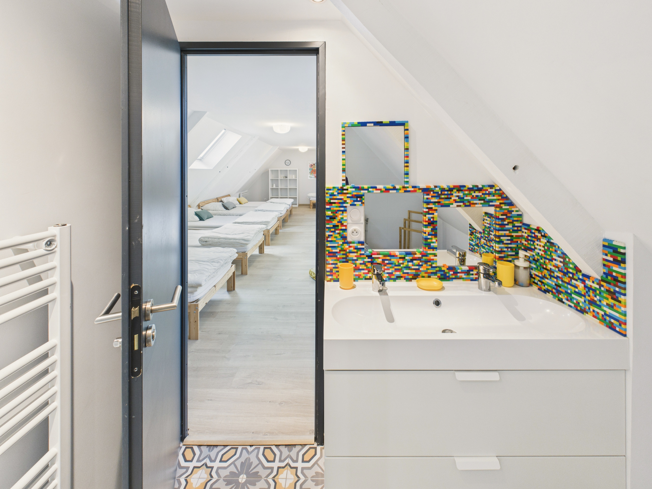 In addition to the dormitory bathroom, a second shared bathroom is located on the first floor and includes a shower, toilets and a hairdryer. A third independent toilet completes the accommodation.