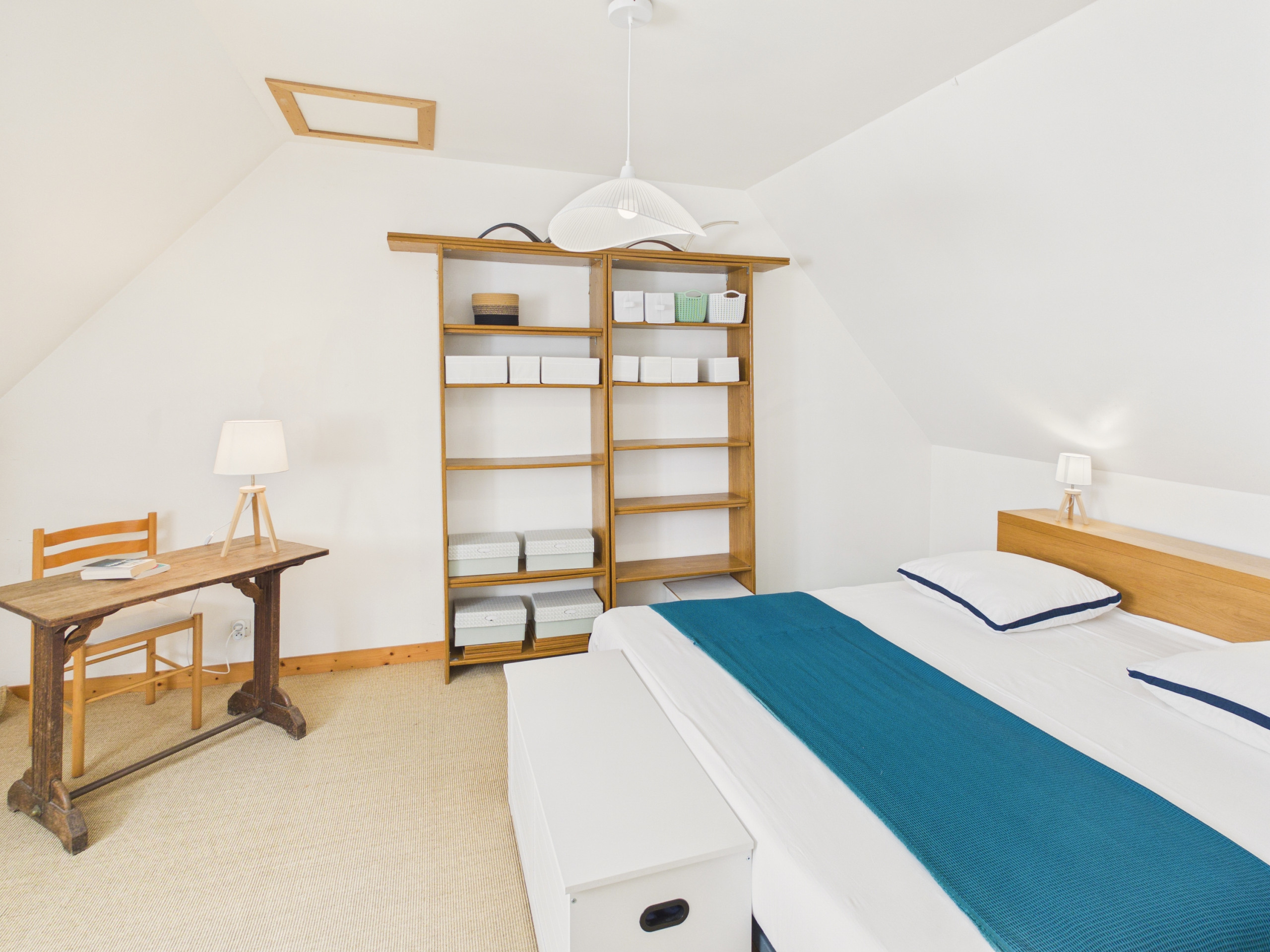 Upstairs, the accommodation includes two bedrooms. The first has a Queen Size bed (160x200 cm), a sofa and a storage wardrobe. The second is equipped with a bunk bed and a single bed (90x190 cm), perfect for children.