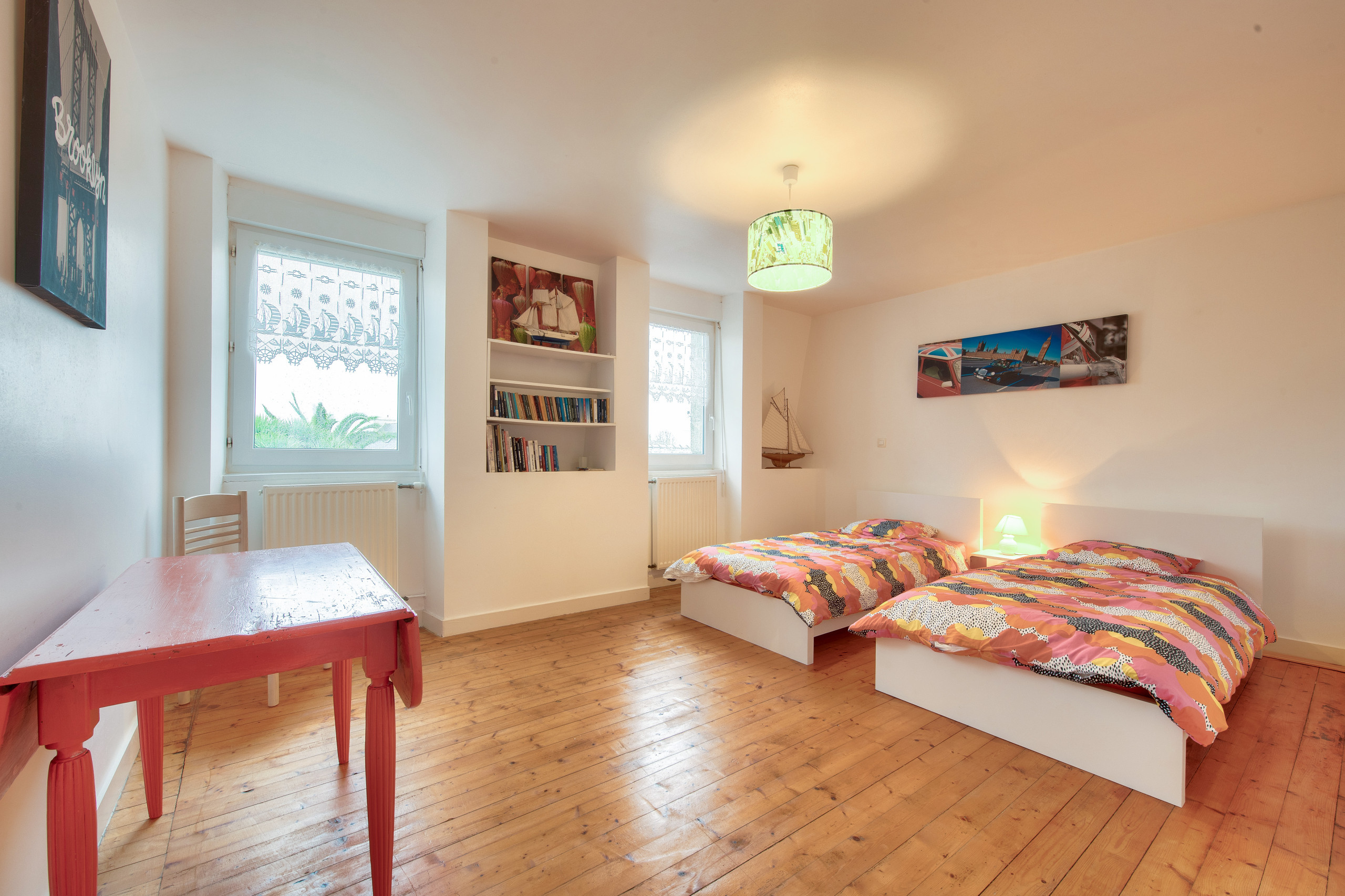 Upstairs, you will discover two bedrooms, each equipped with a double bed (140x190), as well as a children's bedroom with two single beds (90x190). Upon waking up and opening the shutters, you will enjoy a 180-degree view of the Aber Wrac'h!