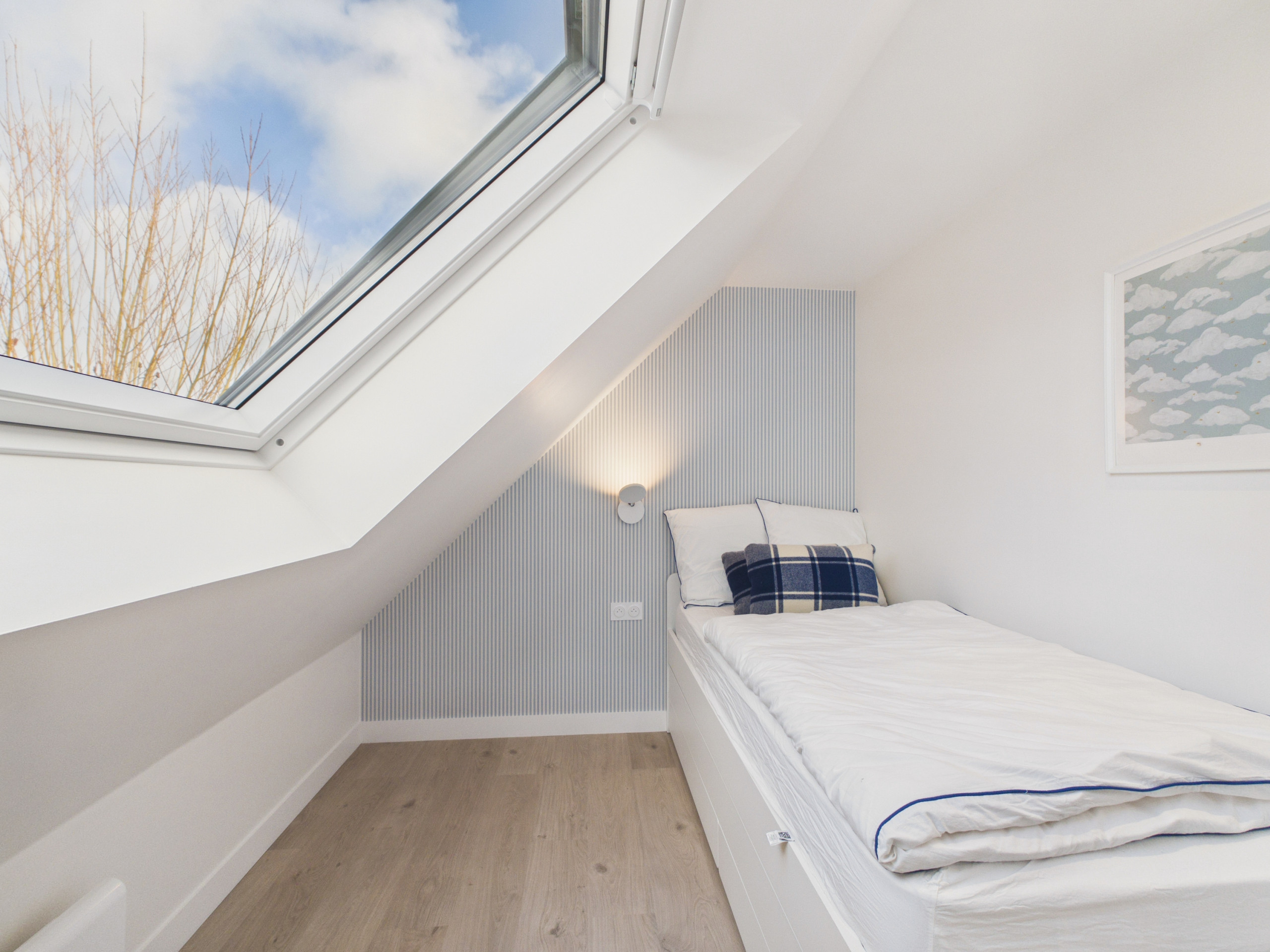 Bedroom 4 (upstairs): a single bed (90x190) with a pull-out bed for an additional sleeping space