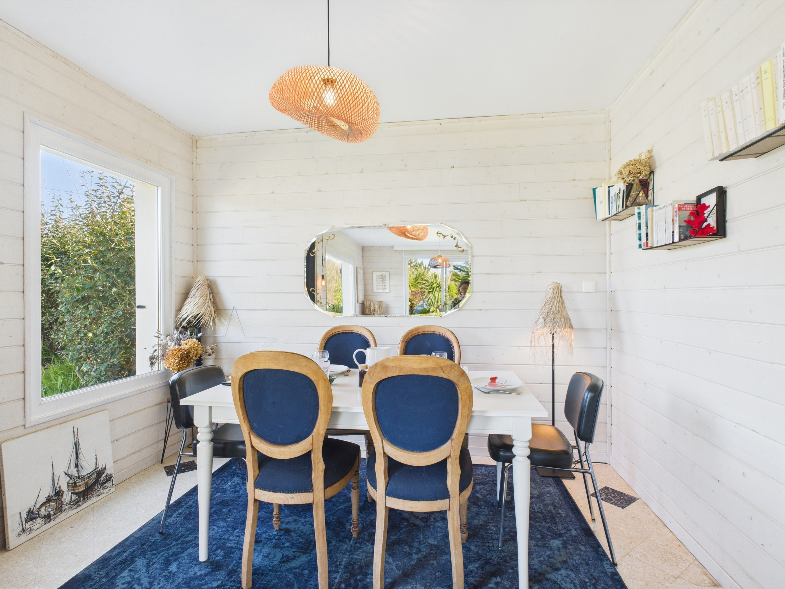 The entrance is via the garage in the basement: go up the stairs and discover a warm living space, open onto two large separate balconies that go around the house. An external staircase allows you to access the garden directly from one of the balconies, perfect for fully enjoying the beautiful days. The open and modern kitchen is equipped with a fridge, a freezer, an oven, a microwave, a dishwasher and all the necessary utensils for cooking. For your breakfasts, you will also find a filter coffee maker, a kettle and a toaster. Share your meals around the dining table for 6 people, and when evening comes, you can relax in the living room, comfortably seated facing the sea.