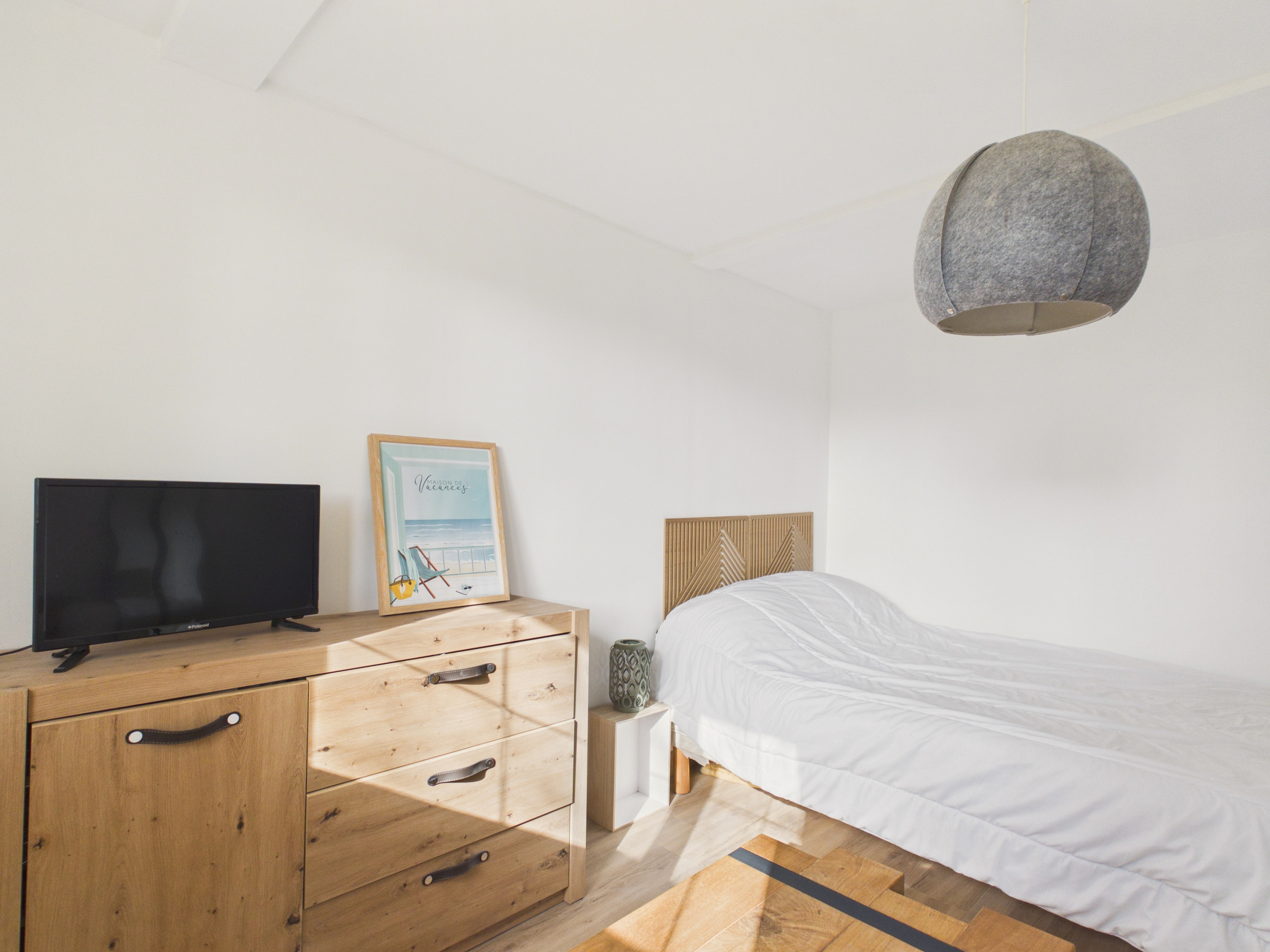 Bedroom 3 (ground floor): a double bed (140x190), a sofa (which can serve as an additional sleeping space for 2 people), a chest of drawers and a television (without channels at the moment)