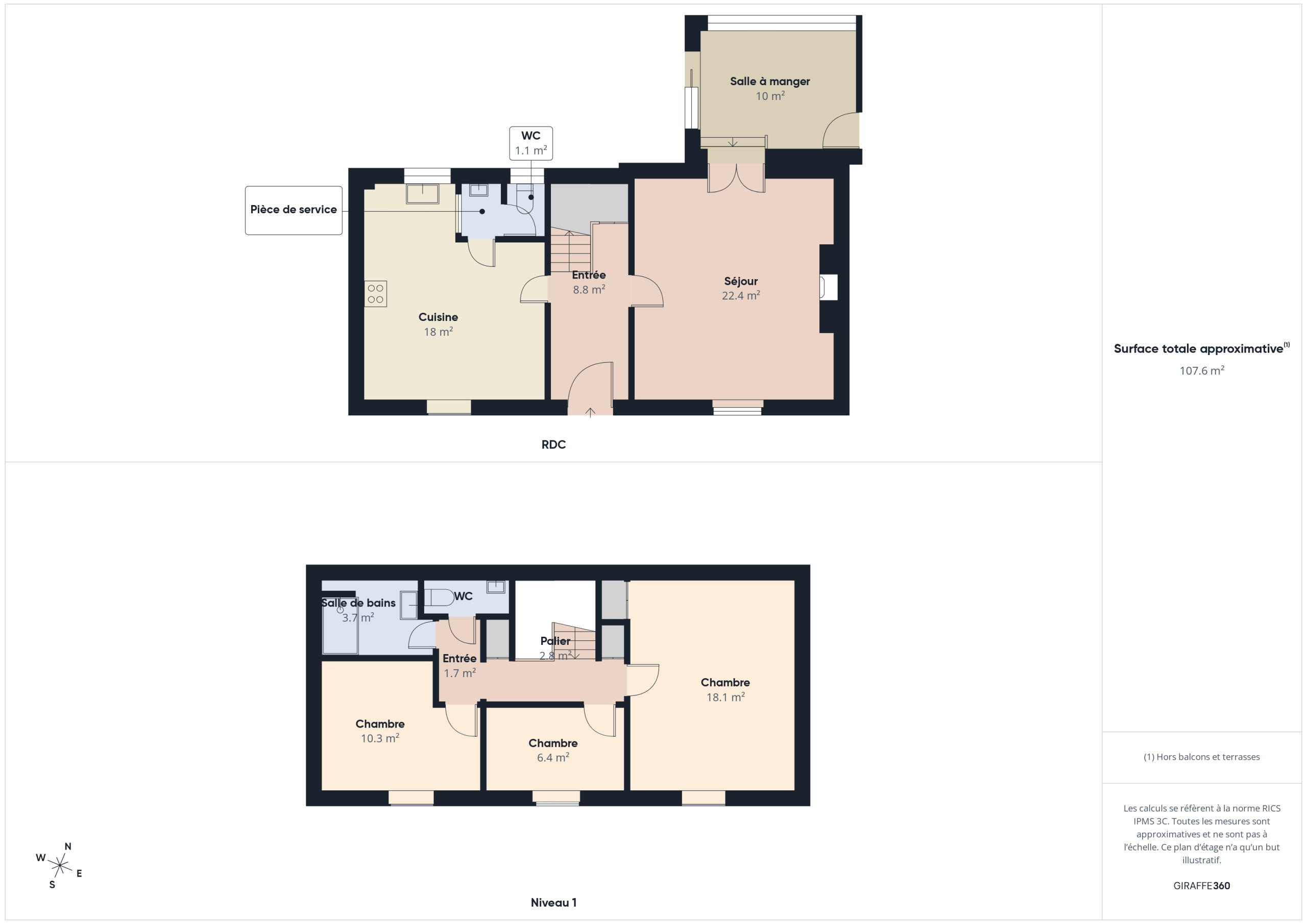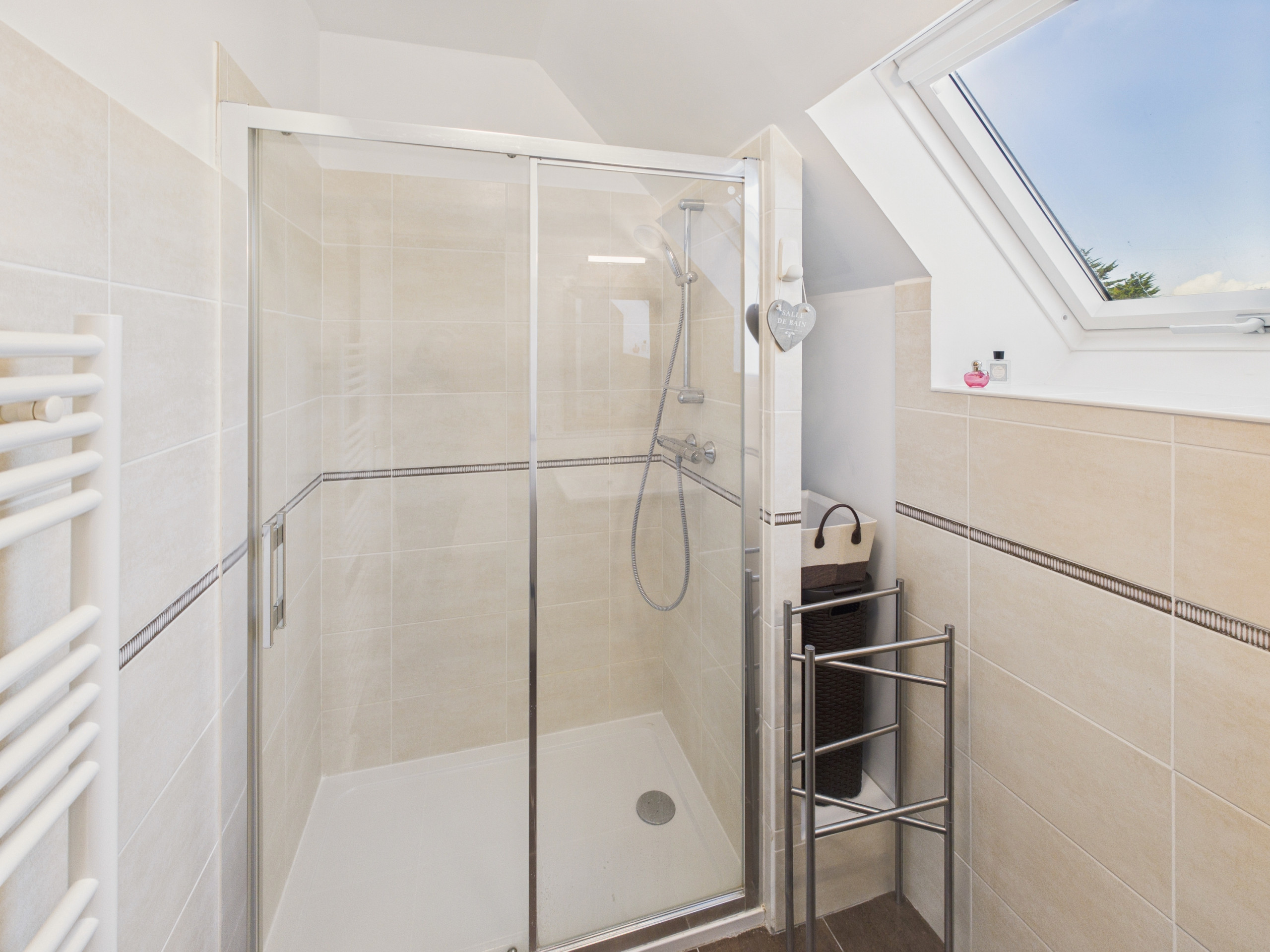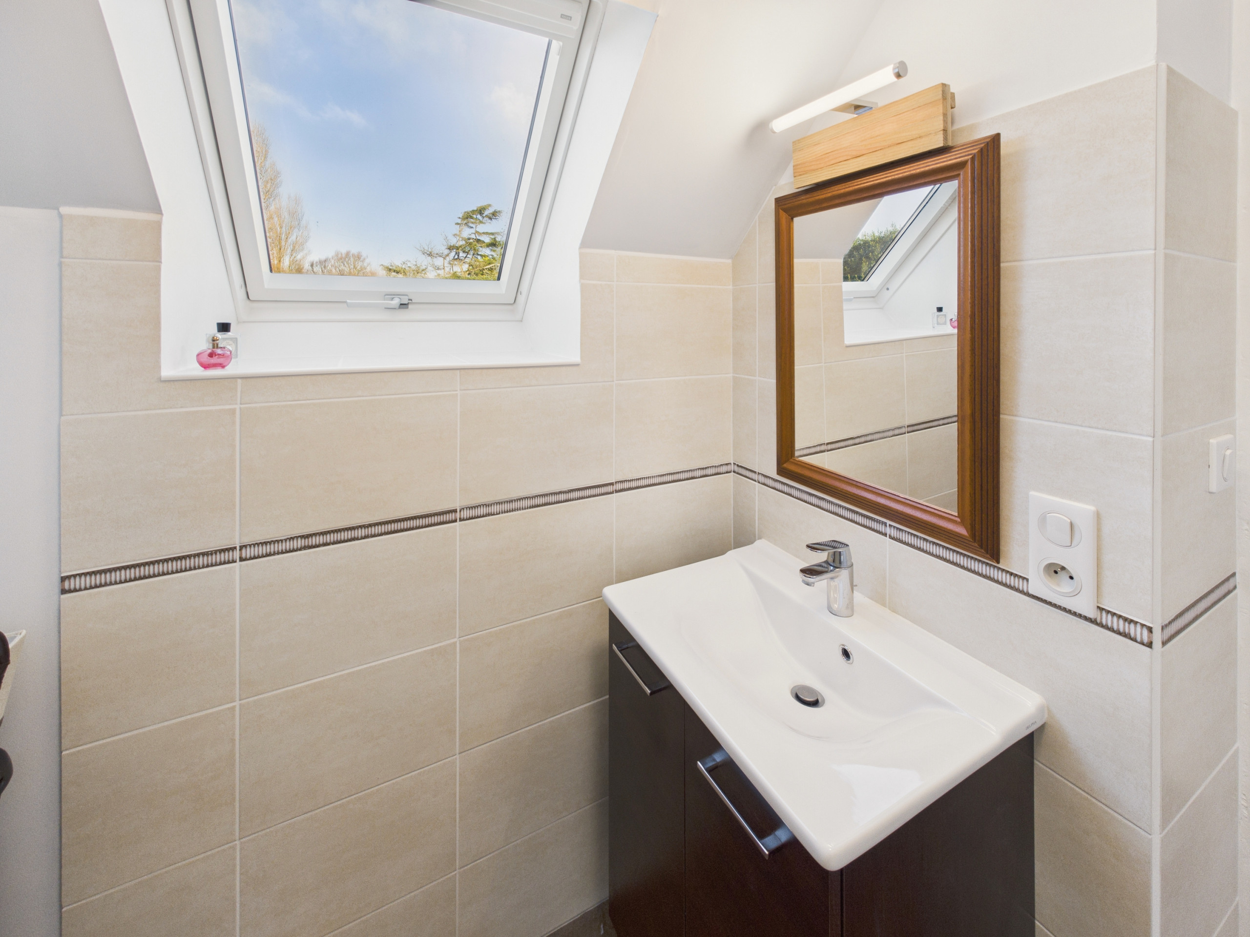 The bathroom, located upstairs, has a shower and a hairdryer. Two toilets complete the accommodation.