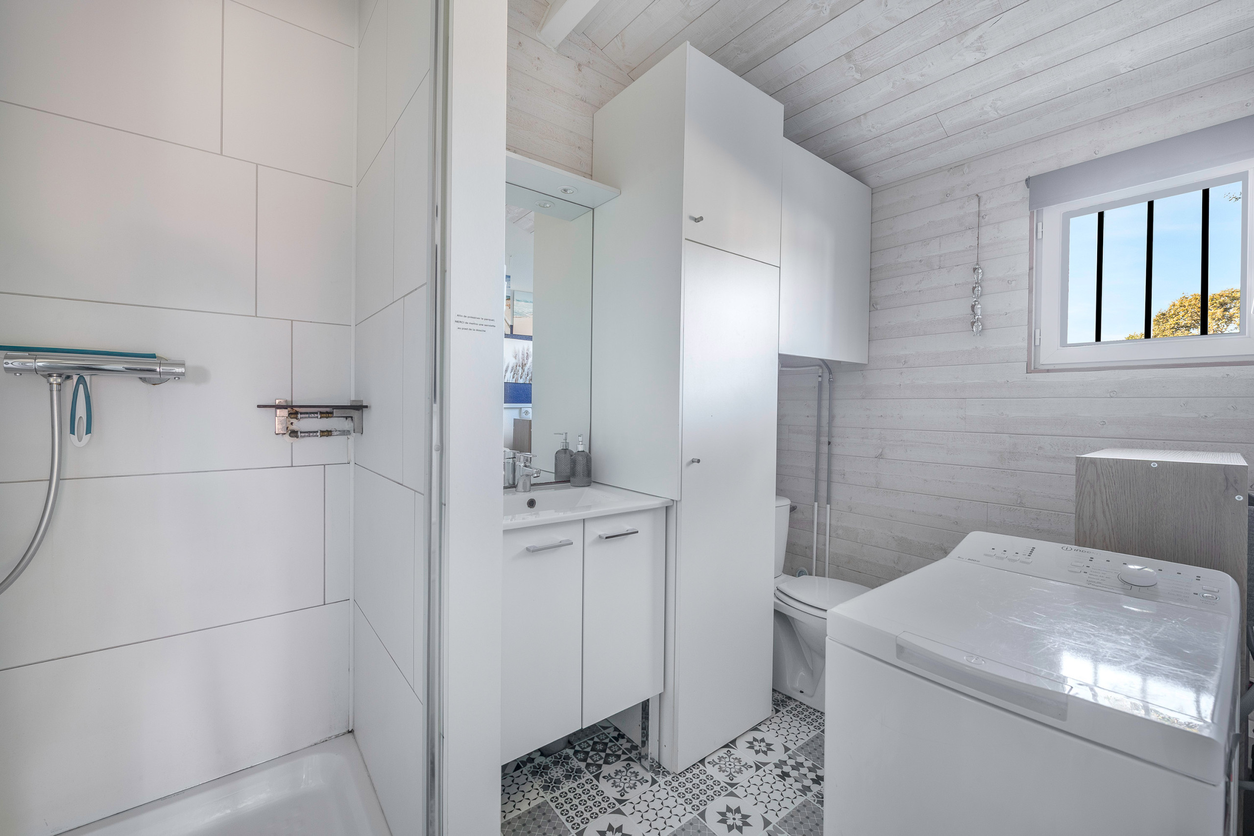 On the night side, you will enjoy a bedroom with a double bed (140x190) and a bedroom with a double bed and a single bed (140x190 and 80x190). A bathroom with an Italian shower and a separate toilet complete the house.