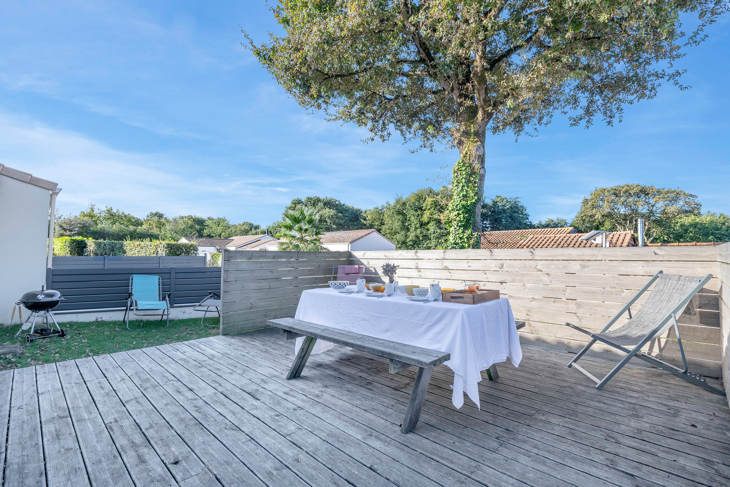 This renovated house of 50 m² and its enclosed and secure garden of 250 m² are located in the quiet and residential area of La Roussellerie, just 800 m from the Dunes beach, the large beach of La Roussellerie and the forest of La Pierre Attelée. It has 2 bedrooms that can accommodate 4 adults and 1 child.