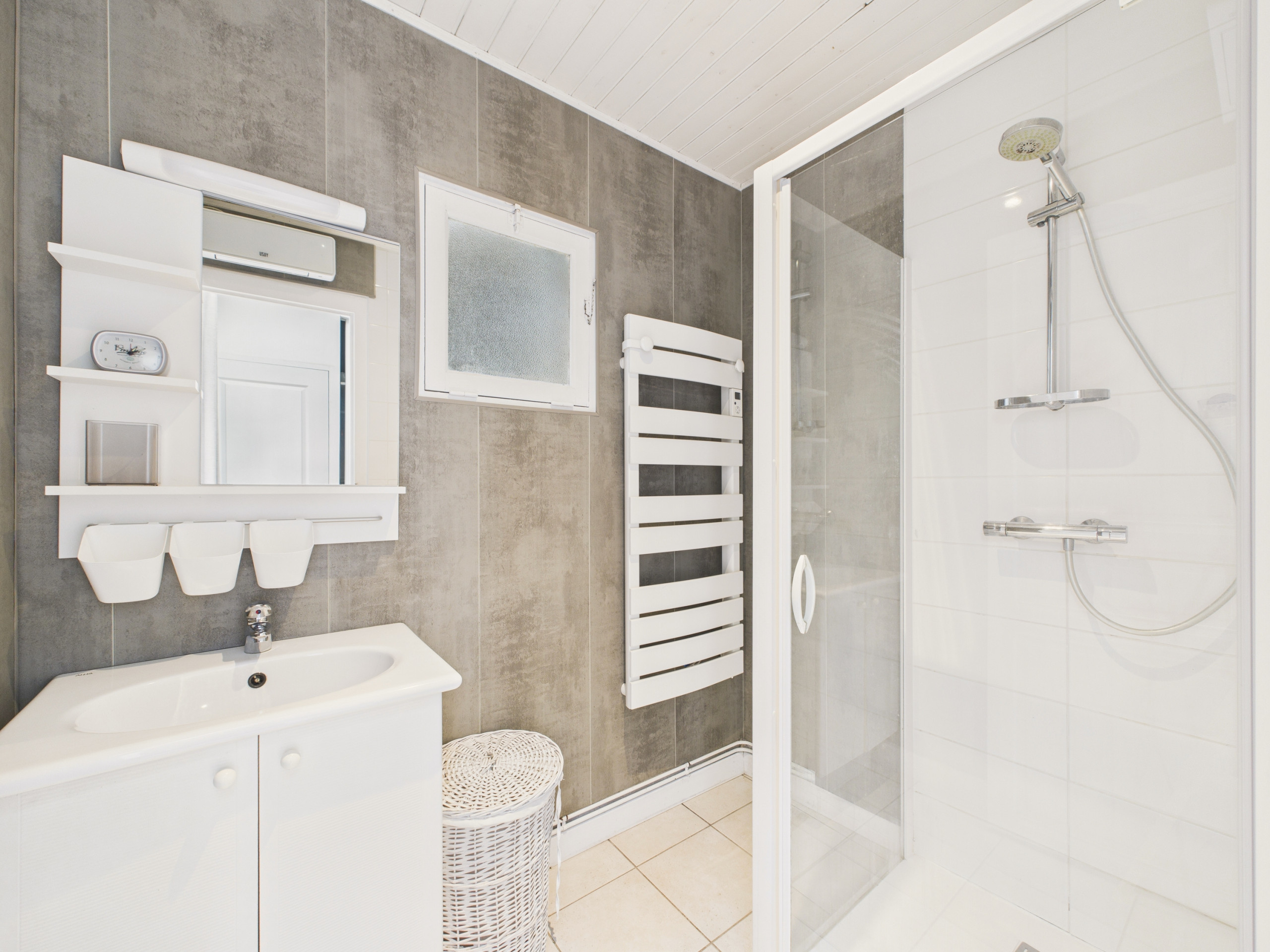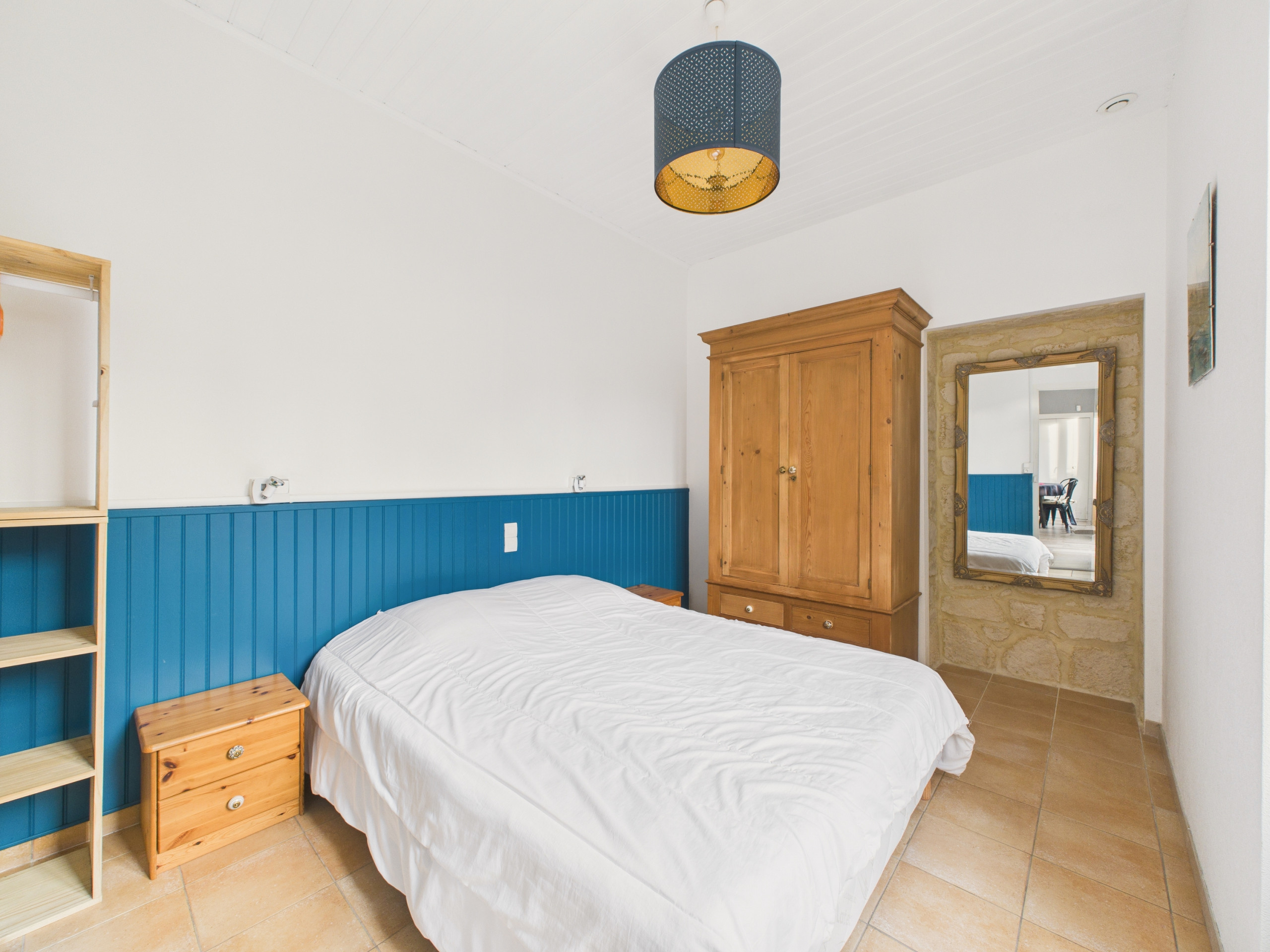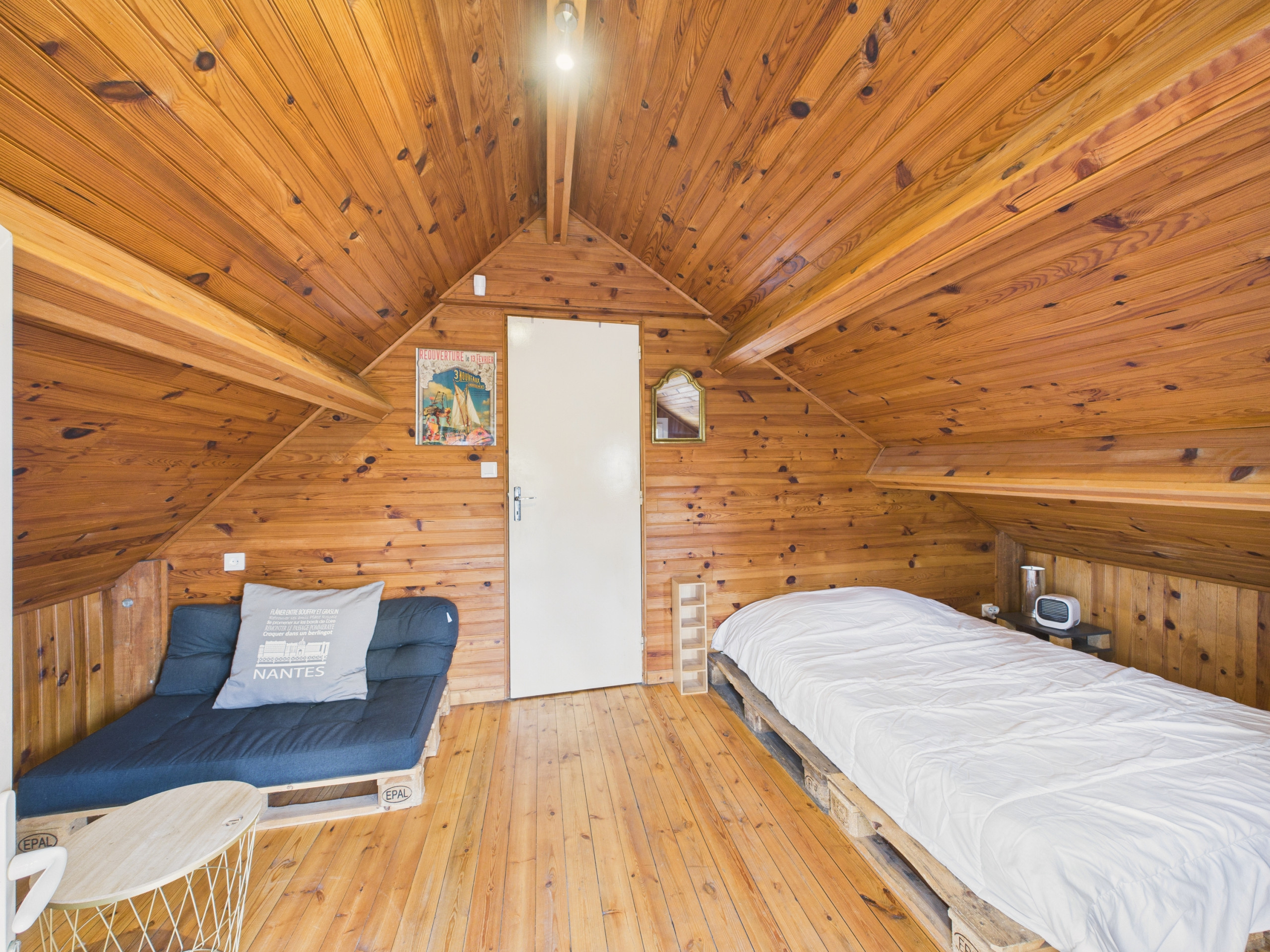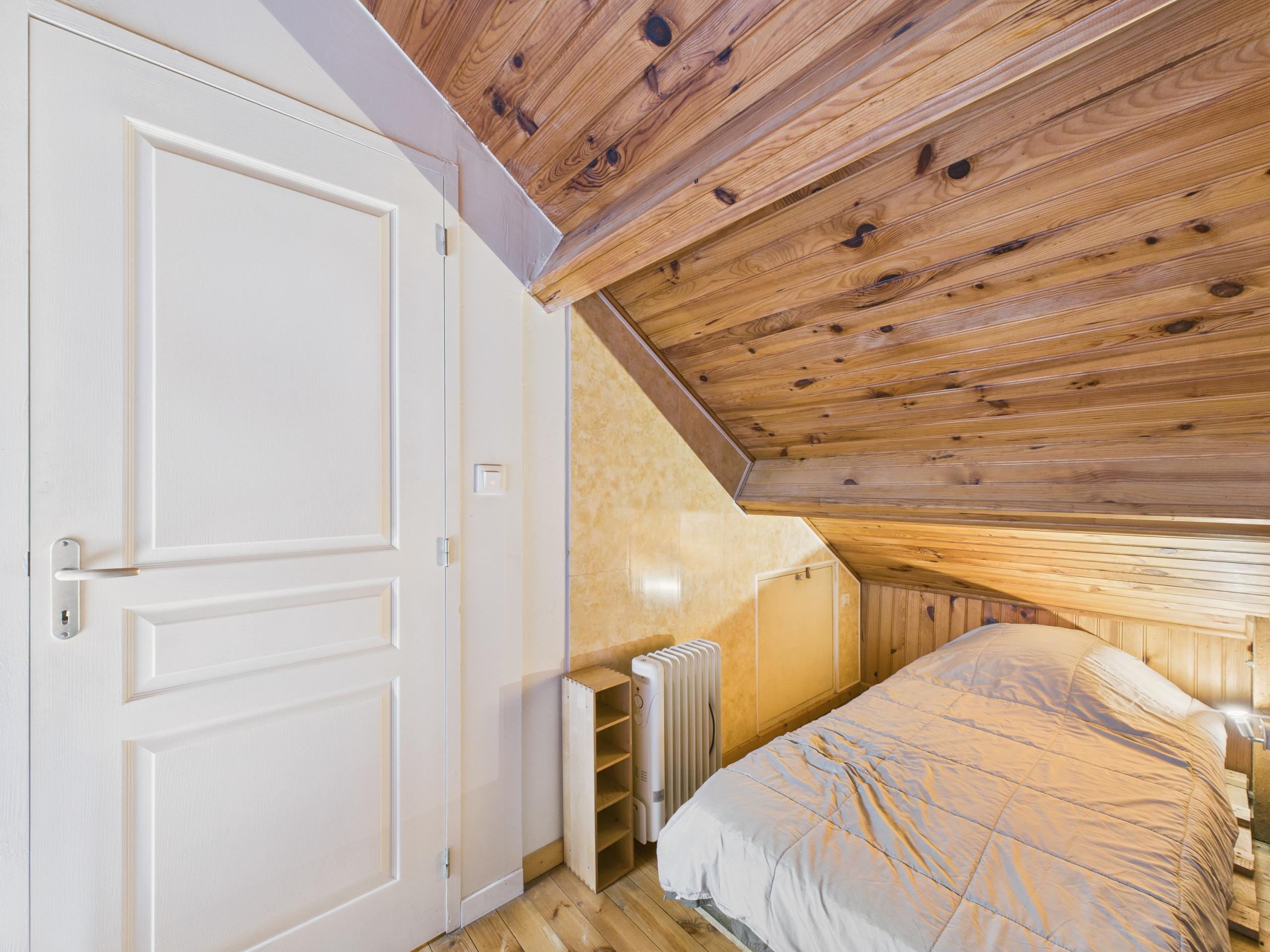 Upstairs, with access from the outside through a troglodyte door, you will find two attic bedrooms, a first through bedroom with a double bed (140x190), then a bedroom with a double bed (140x190), a single bed (90x190) and its bathroom with shower and WC.
