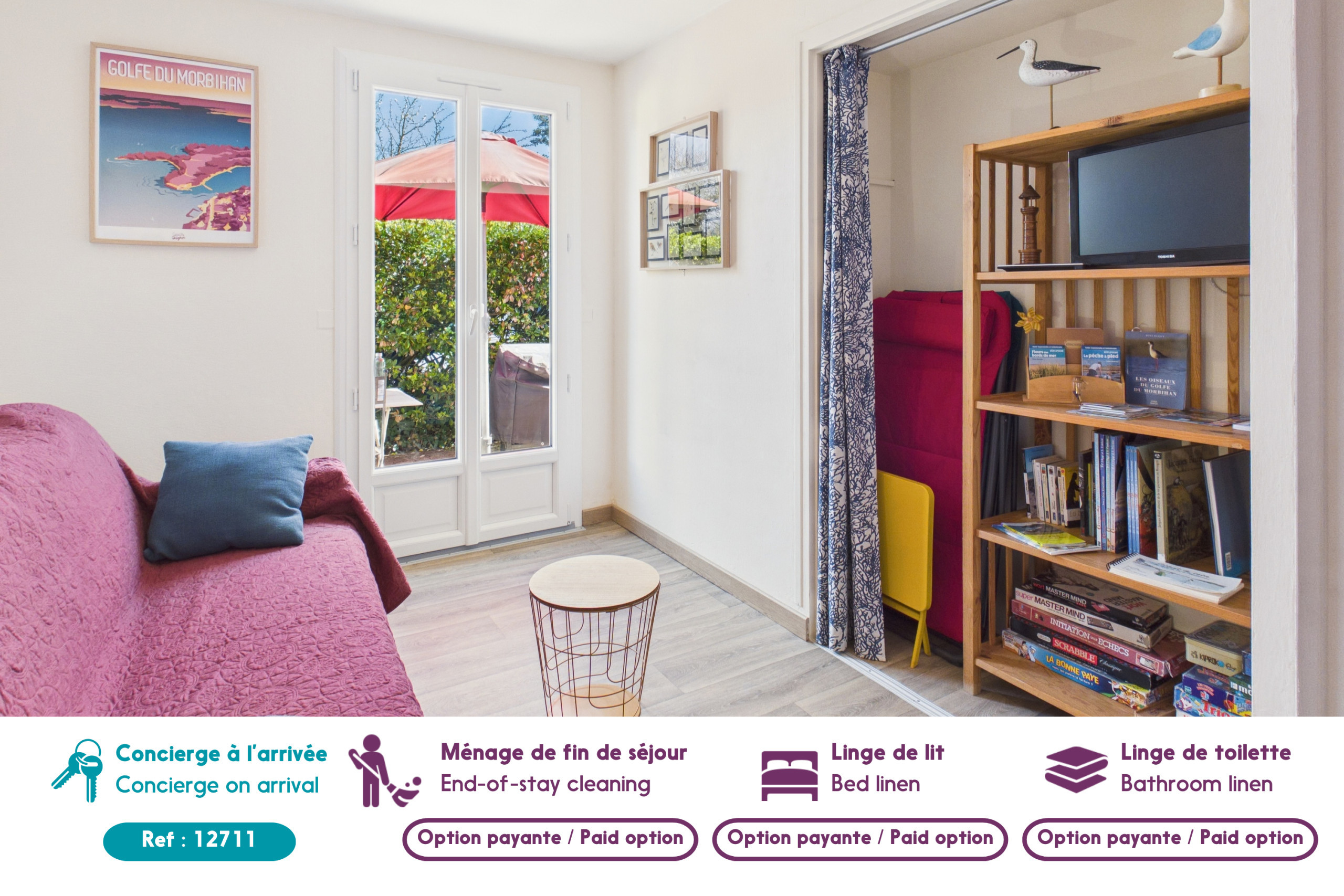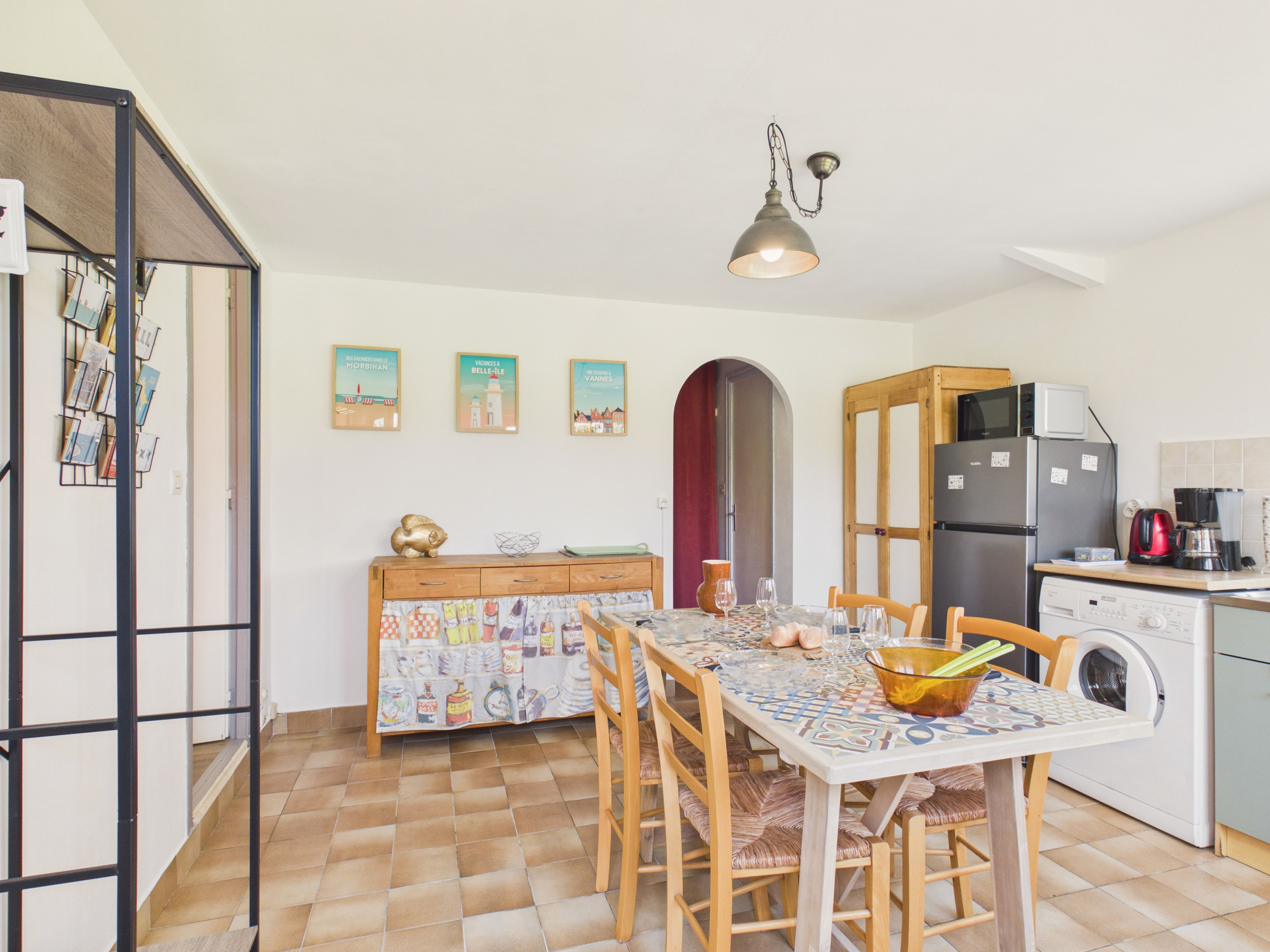 Welcome to the heart of the Rhuys Peninsula, ideally located between Arzon and Sarzeau, between the beautiful beaches of the south and the wilder creeks of the north. This furnished accommodation, installed on the owners' land but entirely independent and private, offers all the necessary comfort to accommodate up to 4 travellers. You will enjoy a pleasant enclosed garden and a terrace equipped with a barbecue, perfect for your summer meals. Only 2 km away, the beach and Kerver golf course are easily accessible on foot or by bike, while the wilder coastline of the northern part of the peninsula, located 500 metres away, promises you superb seaside walks. The accommodation is also located at the crossroads of cycle paths that serve the peninsula.