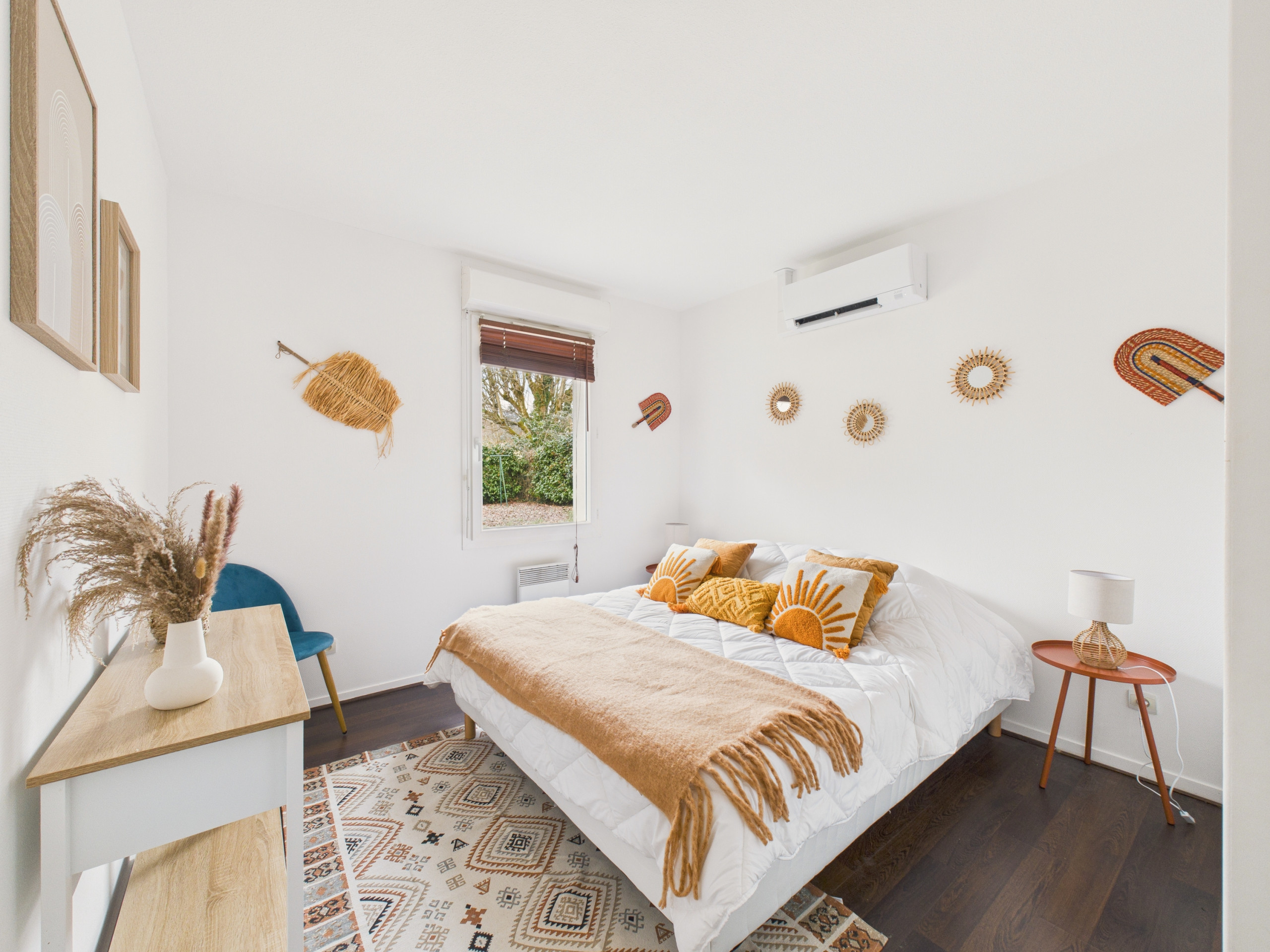 Upstairs, two bedrooms await you: on the right, a bedroom with a double bed (140x190 cm) and private bathroom (shower and WC); on the left, a bedroom with a double bed (160x190 cm), a sofa bed (ideal for a child) and direct access to the south-facing terrace to enjoy the sunshine.