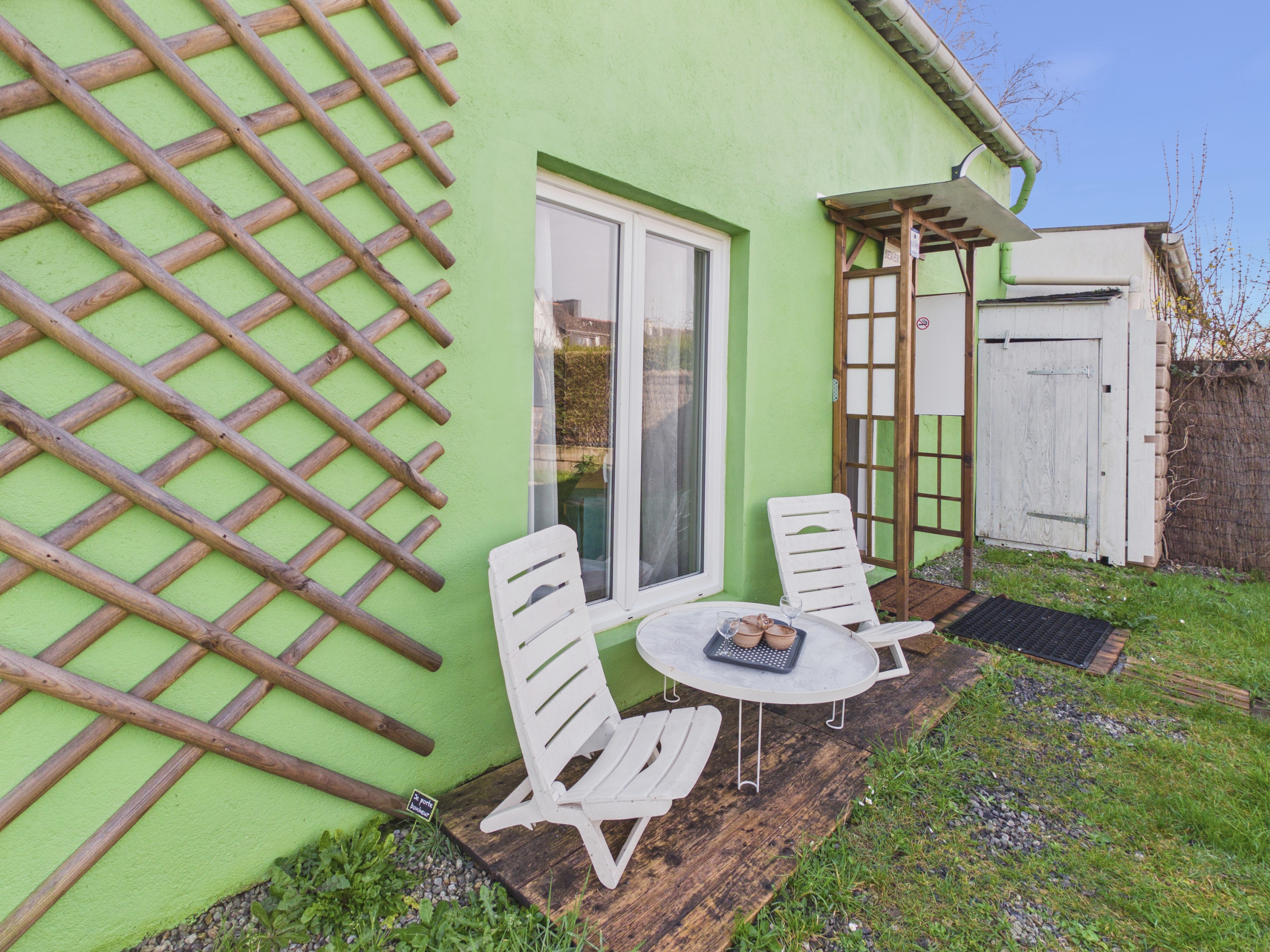 Inside, discover a beautiful, functional and warm living space. The kitchen, fully equipped (induction hobs, oven, microwave, refrigerator), allows you to prepare your meals as if at home. For your breakfasts, you will also have a toaster, a kettle and a Nespresso coffee machine. For eating, you will have the choice between the indoor dining table or the outdoor table in the garden.
