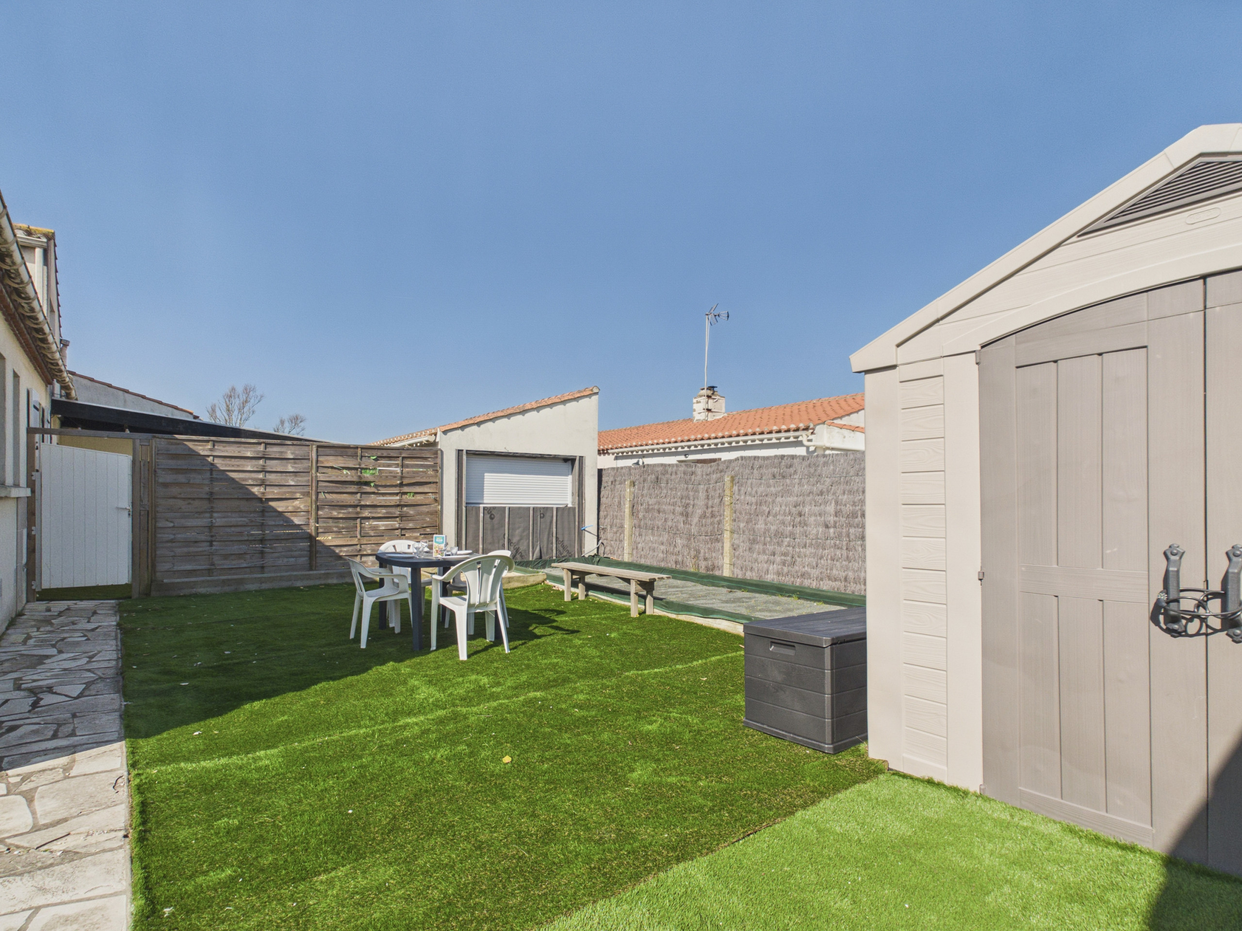 Outside, you will enjoy a pleasant fenced garden for your moments of relaxation. The house also has a beautiful 40 m² terrace fitted with garden furniture and a barbecue, ideal for sharing meals outdoors as well as a sandpit and a gravel petanque court.