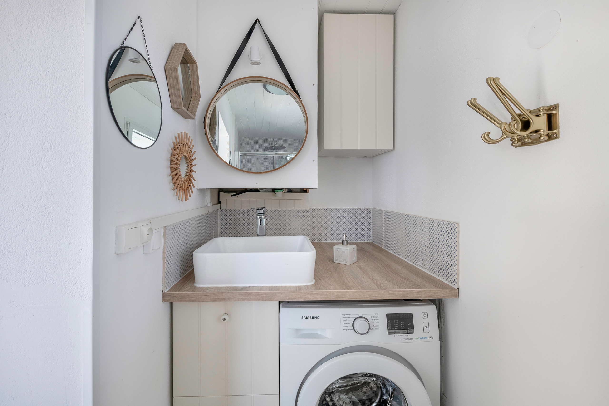 For your comfort, the accommodation provides two hairdryers, a washing machine, a table and garden chairs, a parasol, an outdoor lounge, a solar shower and a barbecue.