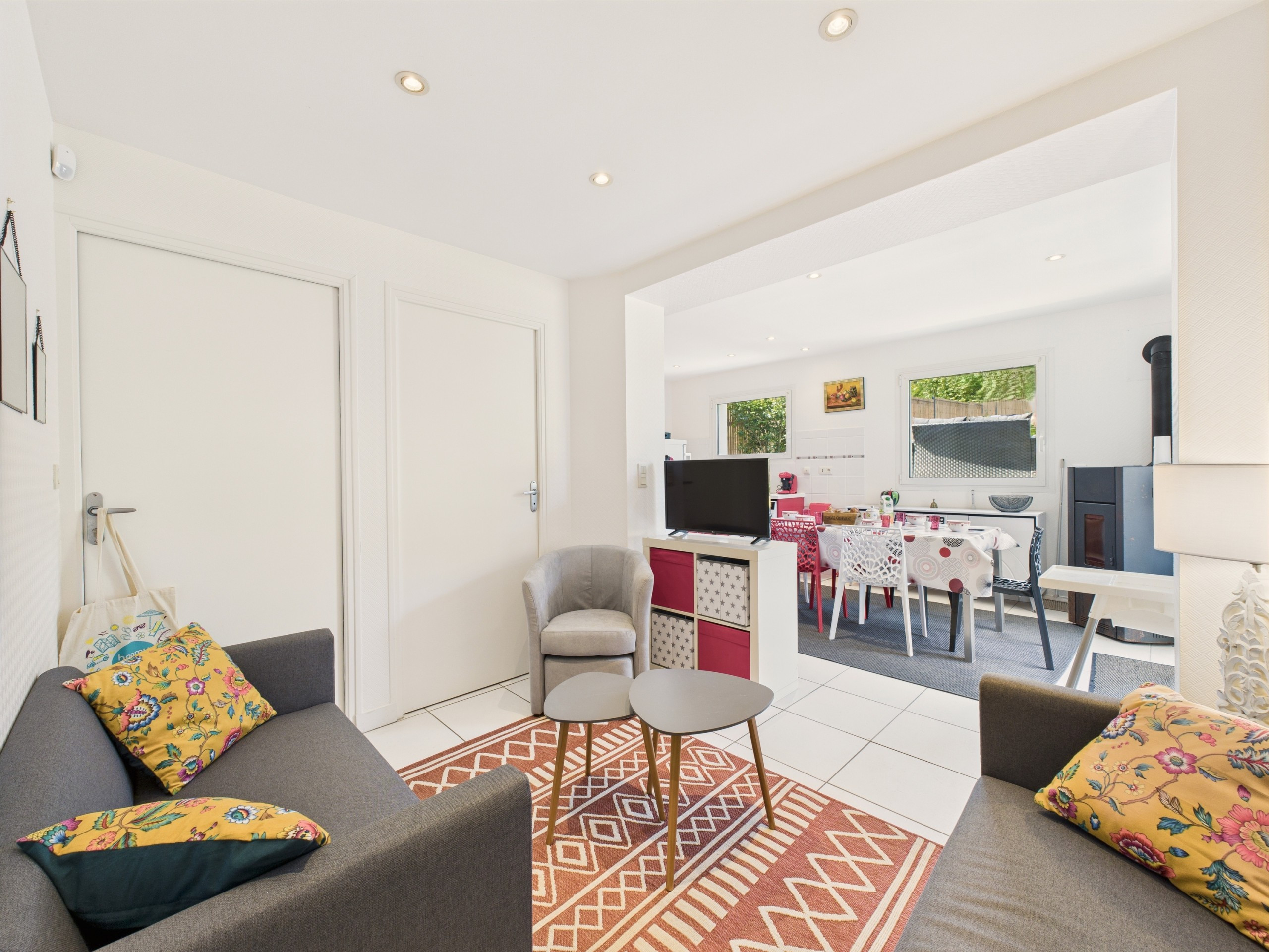 Welcome to this comfortably furnished 60 m² house. As soon as you enter, you will discover a beautiful living room bathed in light. The lounge, with its comfortable sofa and television, is an ideal space to relax after a day at the beach or on coastal trails. It opens onto a colourful and friendly open kitchen, equipped with everything necessary to prepare your meals: gas hobs, fridge-freezer, microwave, oven, dishwasher, coffee makers (filter and Tassimo), toaster, kettle and all the utensils you might need.